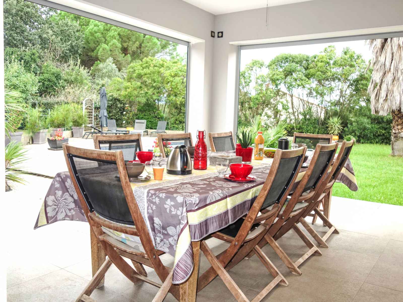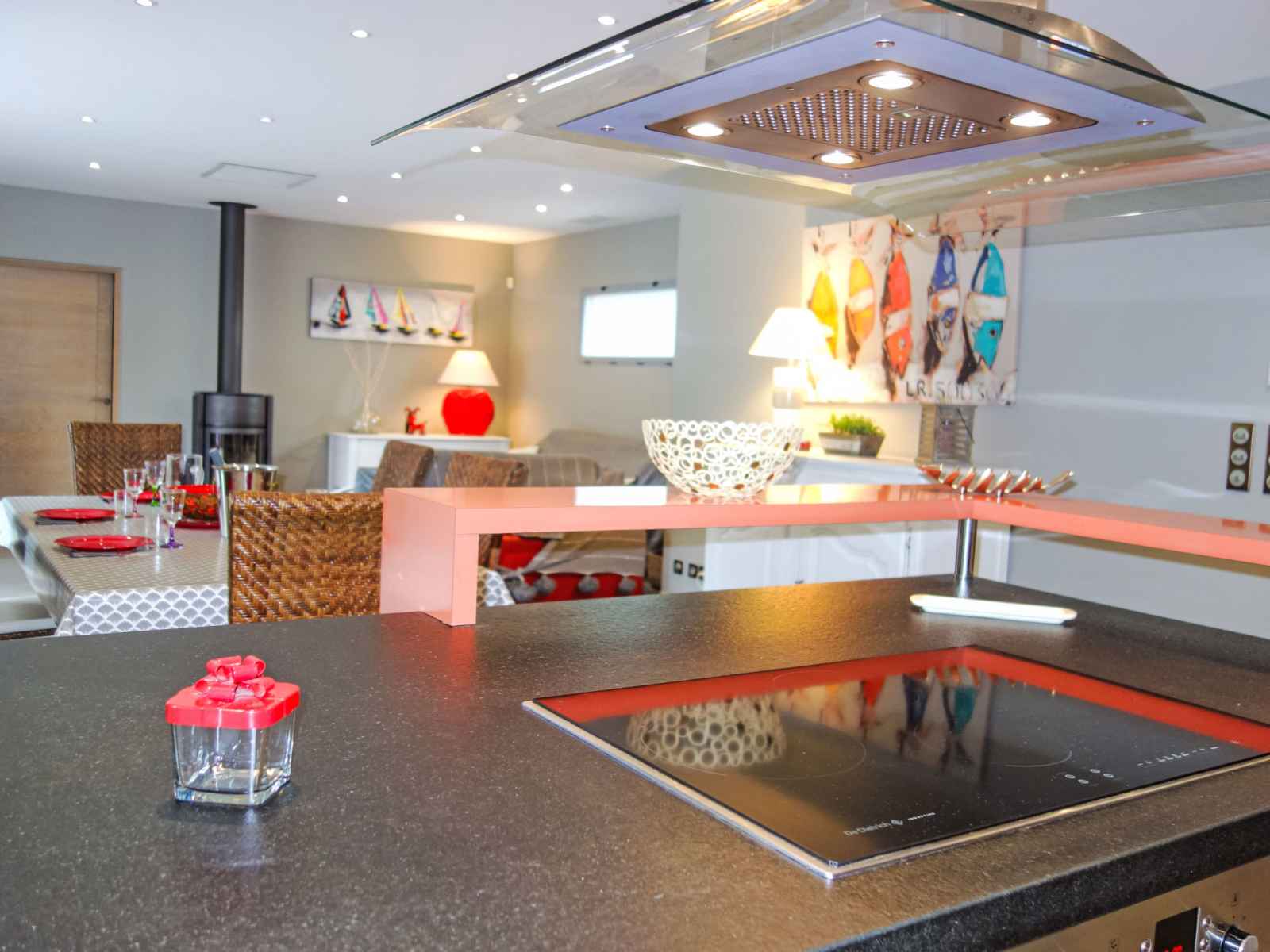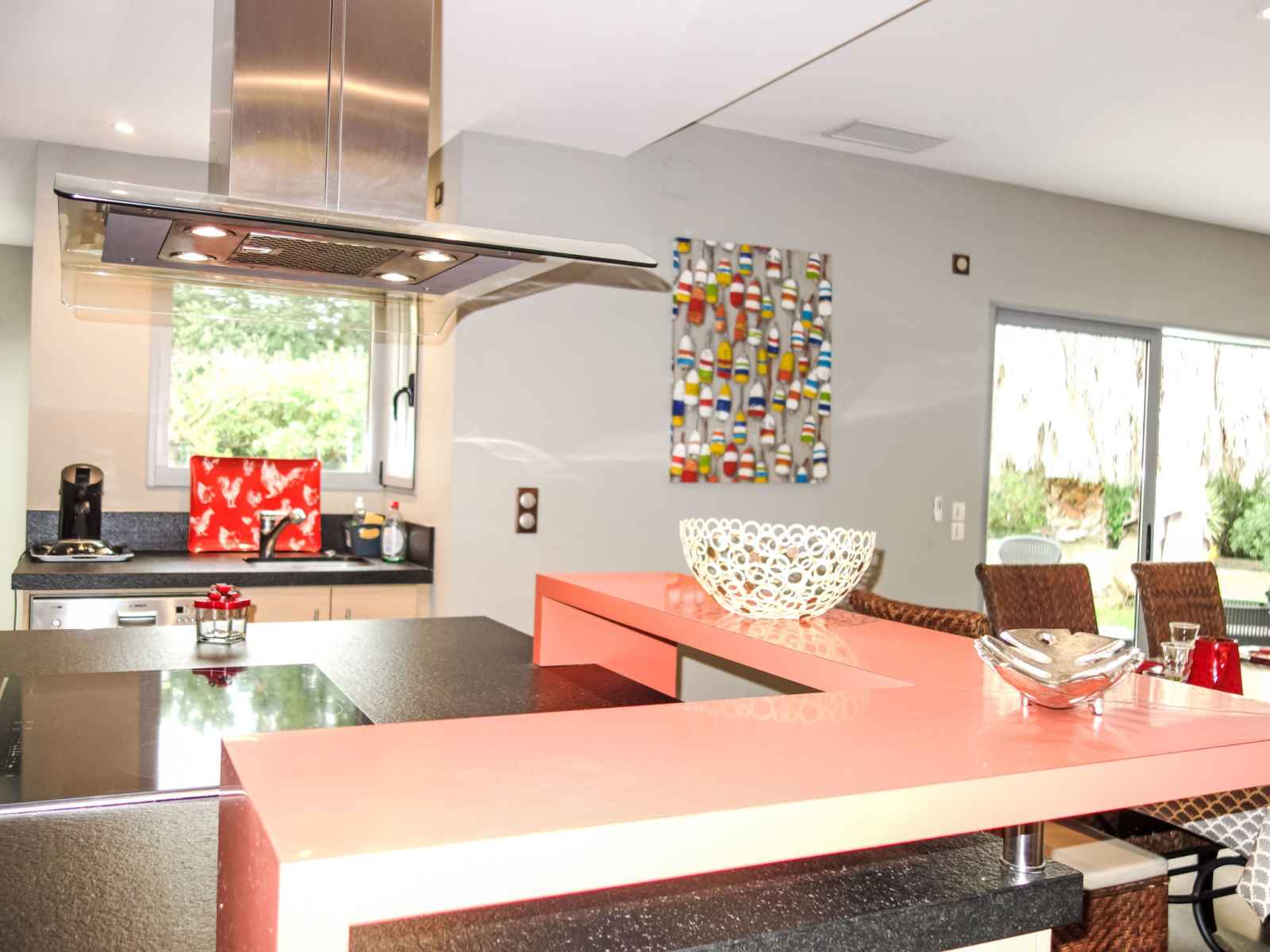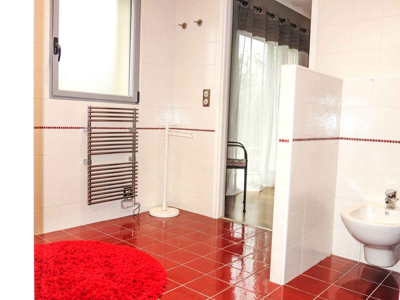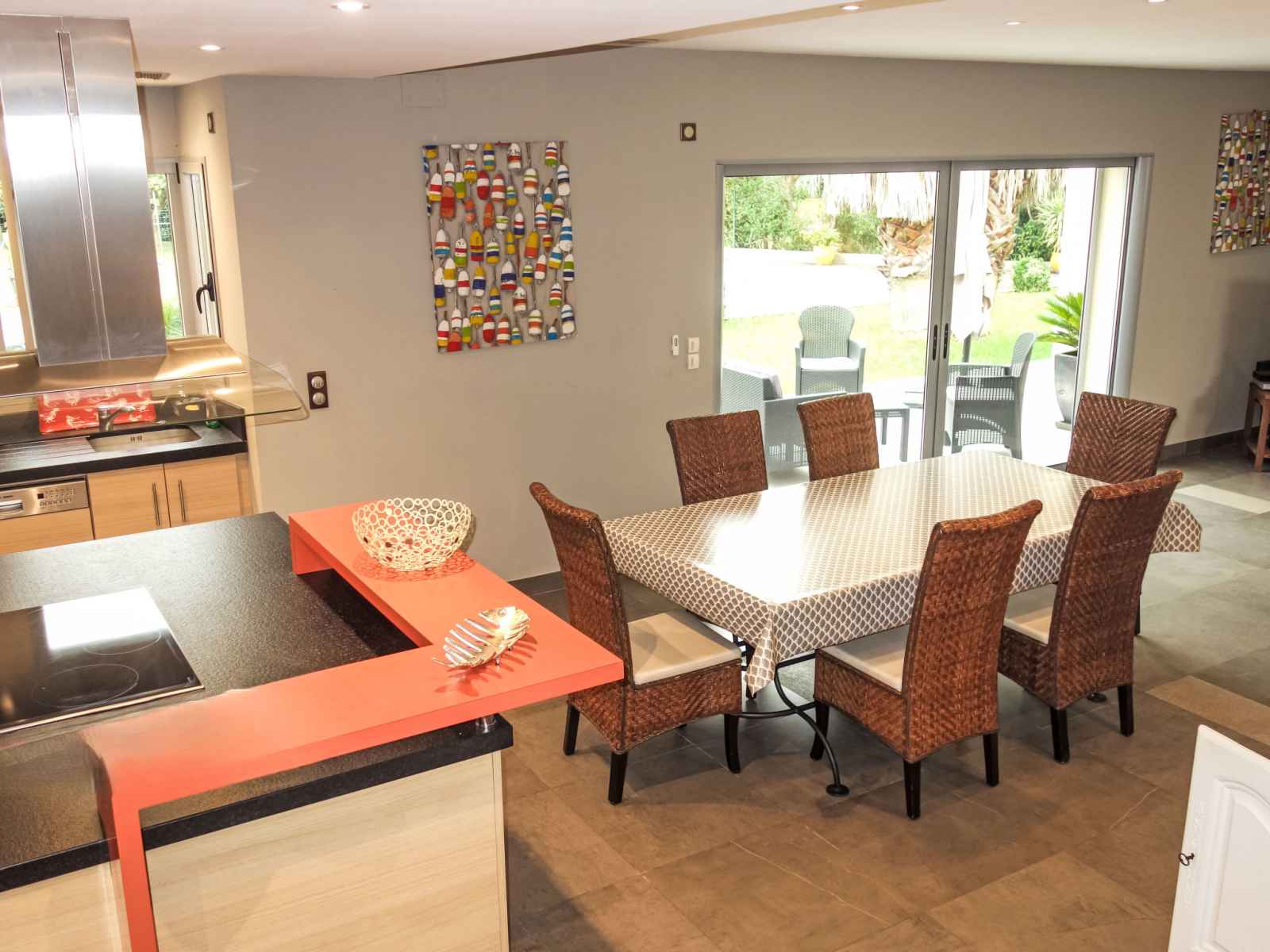 Villa 6 pièces 200 m2 sur 2 niveaux, situation sud-ouest. aménagement confortable et agréable: séjour avec coin repas et tv (écran plat). sortie sur la terrasse. 1 chambre avec 1 grand-lit, bidet et douche. sortie sur la terrasse. 1 chambre avec 1 grand-lit et douche. cuisine ouverte (four, lave-vaisselle, 4 plaques à induction, grille-pain,