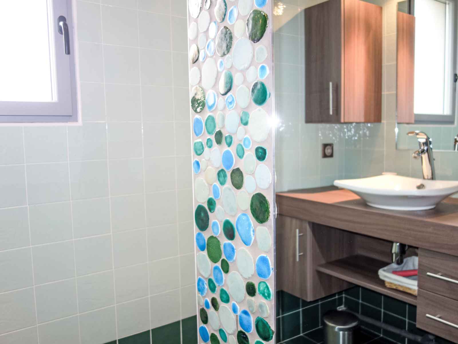 bouilloire électrique, micro-ondes, congélateur, cafetière électrique, Capsules pour machine à café (senseo) (NON INCLUSES)). Sortie sur la terrasse. 2 WC séparés. Air-conditionné. À l'étage supérieur: 2 chambres, chaque chambre avec: 1 grand-lit et air-conditionné. Sortie sur le balcon. Douche, WC séparé. A disposition: lave-linge, sèche-linge, fer à repasser, sèche-cheveux. Internet (Connexion WIFI, gratuit). Veuillez noter: détecteur de fumée.