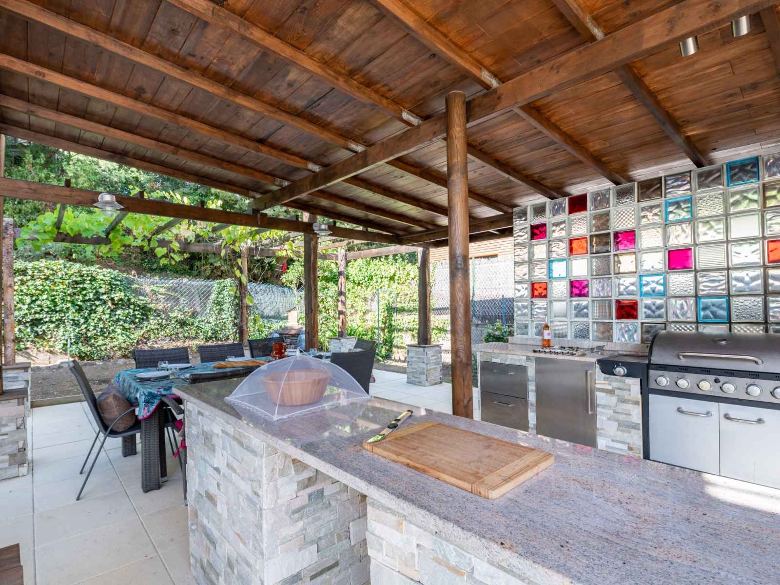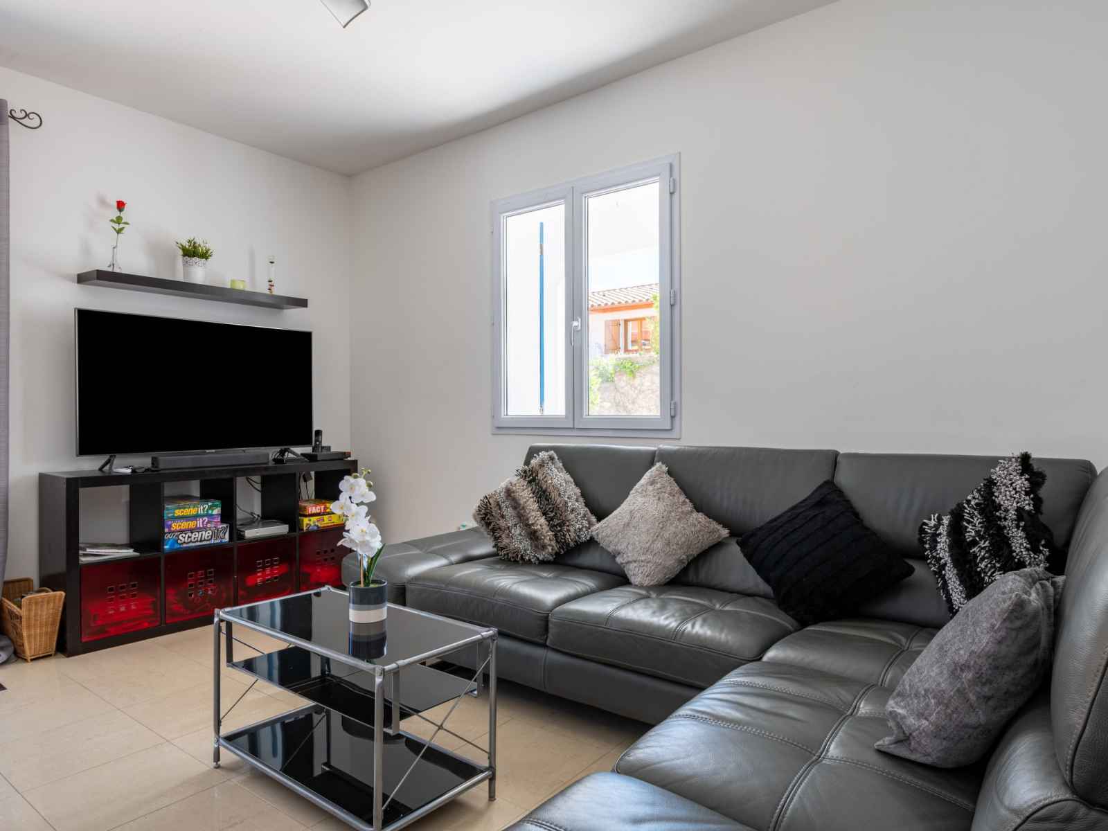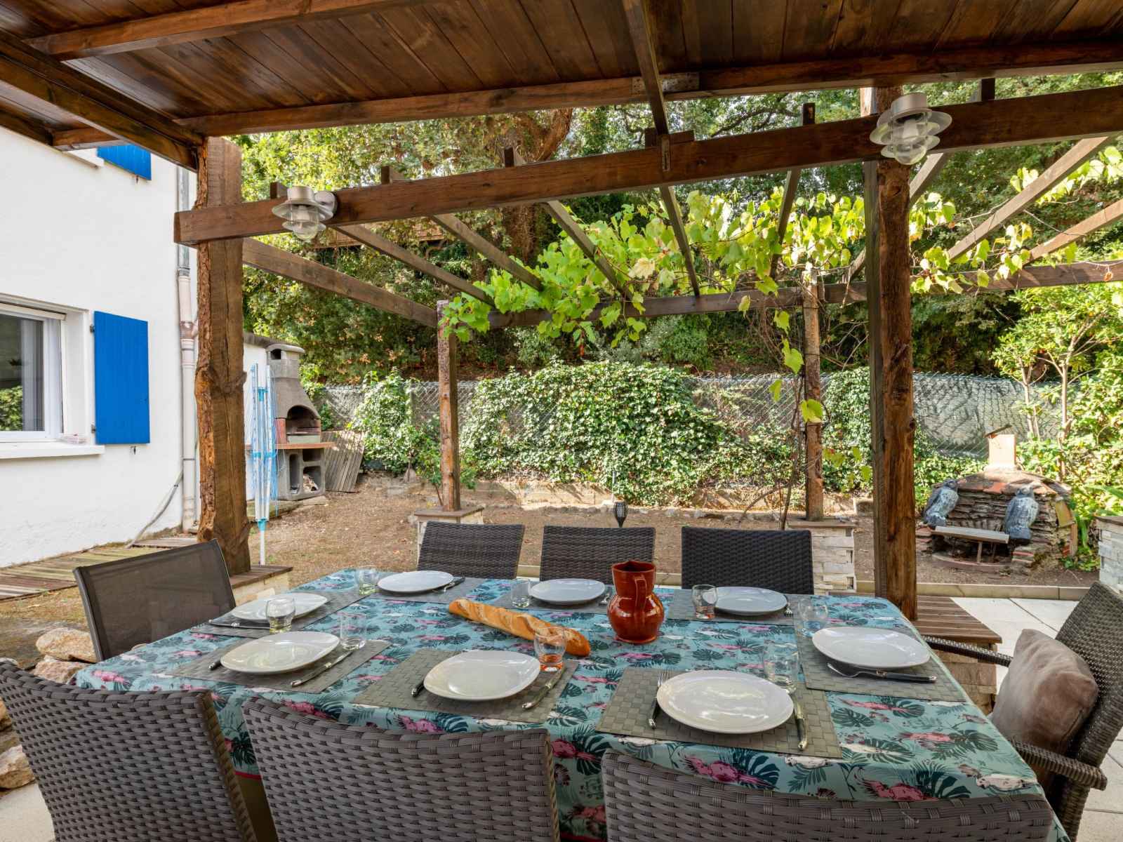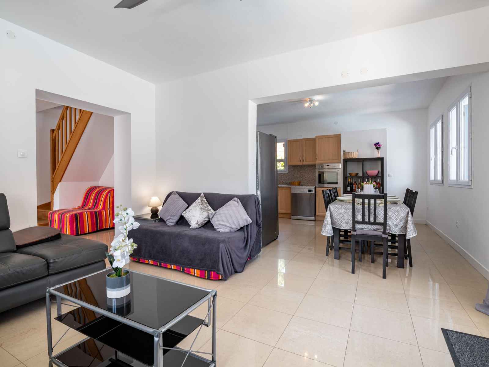 Maison 5 pièces 130 m2 sur 2 niveaux. aménagement fonctionnel et agréable: séjour/salle à manger avec tv (écran plat). sortie sur la terrasse. 1 chambre avec 1 grand-lit (160 cm, longueur 190 cm), ventilateur. coin cuisine (four, lave-vaisselle, 4 plaques vitrocéramiques, grille-pain, bouilloire électrique, micro-ondes, congélateur,
