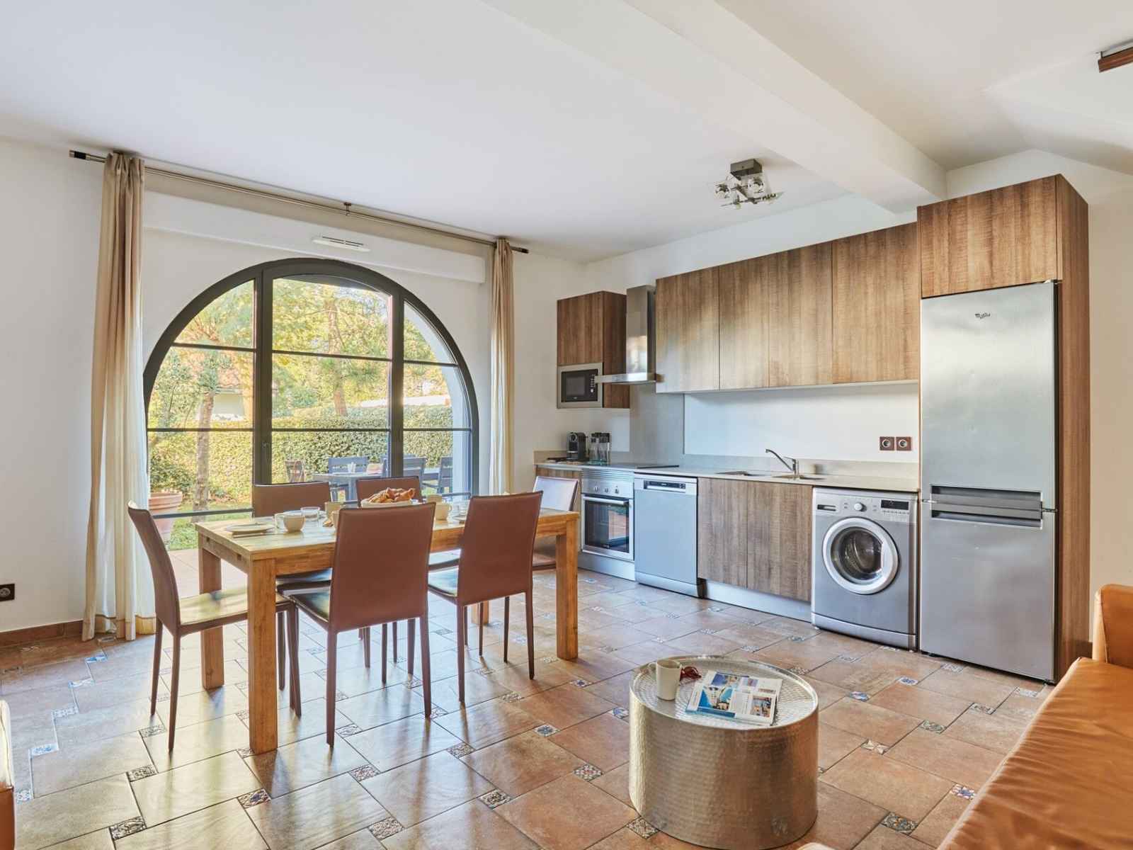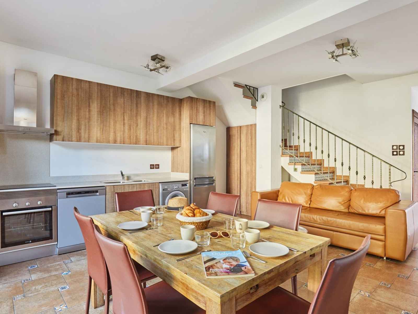 cuisine (plaque vitrocéramique, réfrigérateur/congélateur, four, micro-ondes, lave-vaisselle, lave-linge)