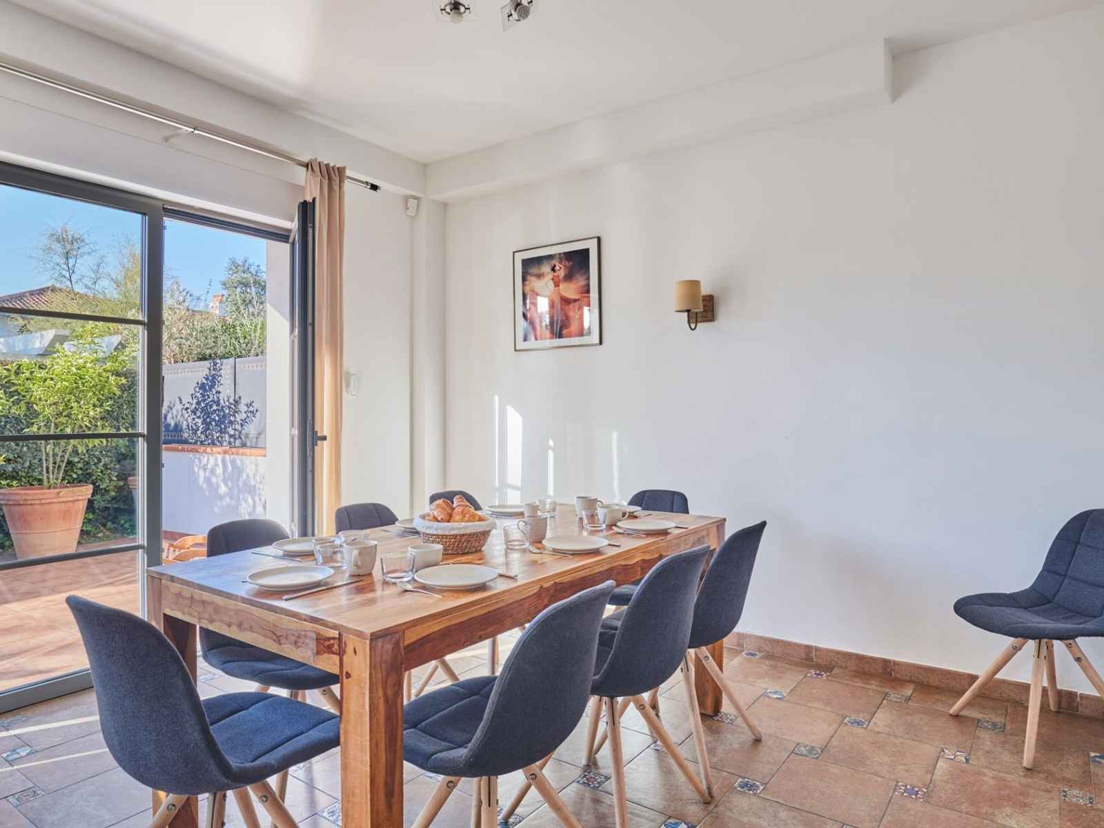 Balcon, terrasse avec mobilier de jardin (table pour 6 personnes & chaises + 2 chaises longues)