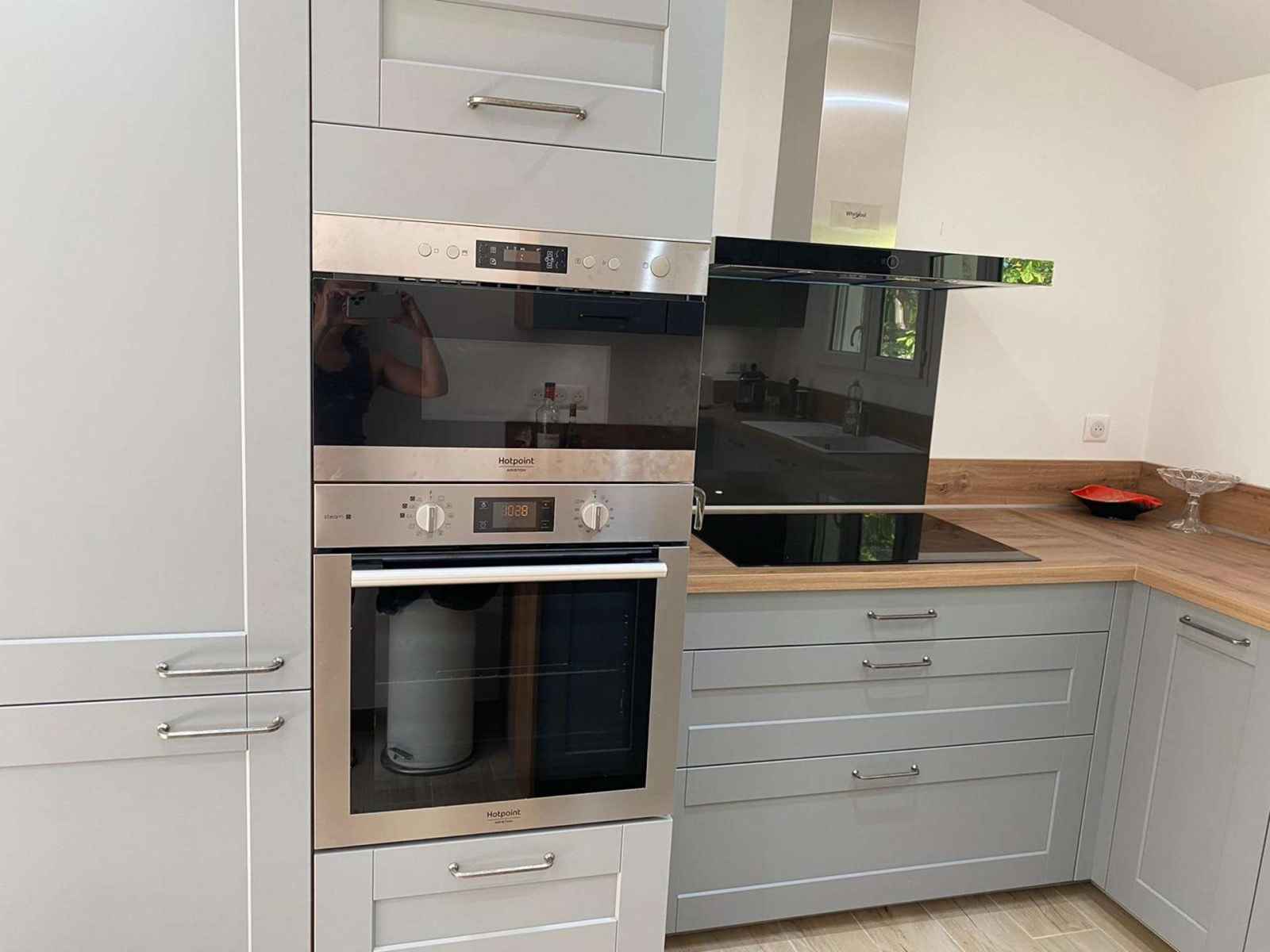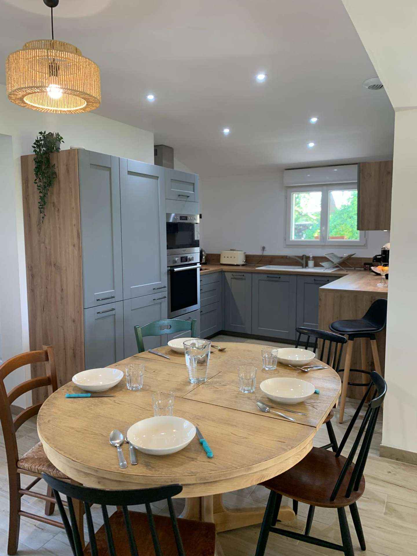 Cuisine ouverte : Nespresso, four, micro-onde, réfrigérateur, lave-vaisselle, bouilloire, grille pain smeg, robot magimix , plaque de cuisson à induction avec hotte, four, réfrigérateur avec un petit congélateur intégré