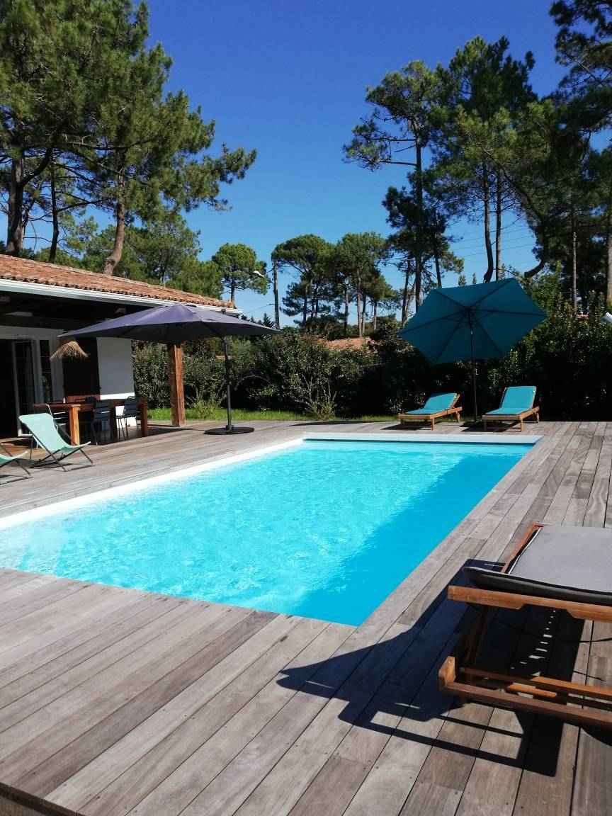 Villa l’arrayou, agréable villa de 130m2 pour 8 personnes, située à 500m des commerces et 800m de la plage, 6kms du lac,, dans un quartier résidentiel et implantée sur un terrain de 1200m2. depuis le séjour, vous aurez une vue dégagée sur la piscine et le jardin entièrement clos. piscine chauffée à 26 degrés de 4,5x8m, profondeur