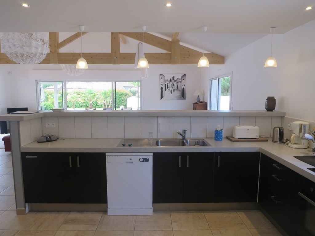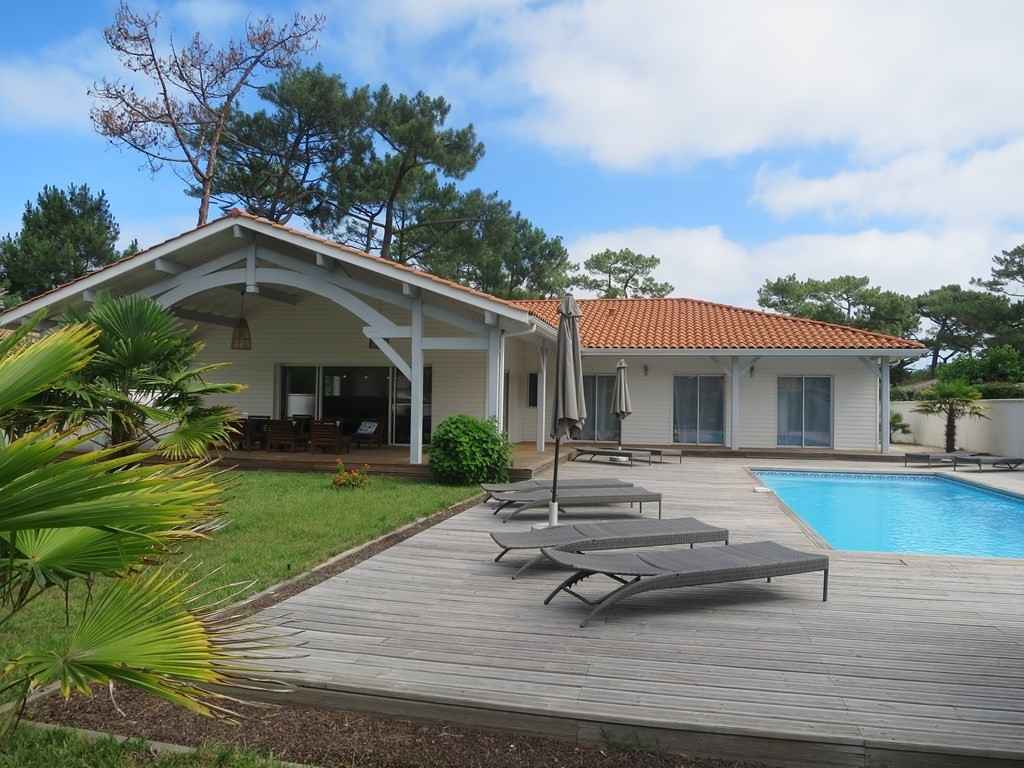 Située dans un quartier résidentiel, à 1 km de la plage et des commerces, agréable villa de 160m2 pour 12 personnes, spacieuse et lumineuse, sur un terrain clôturé de 1000m2. piscine de 50 m2, d’une profondeur de 1.50m, sécurisé paru ne alarme, avec mobilier de jardin, transats et barbecue. animaux non acceptés.
