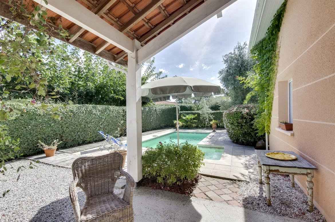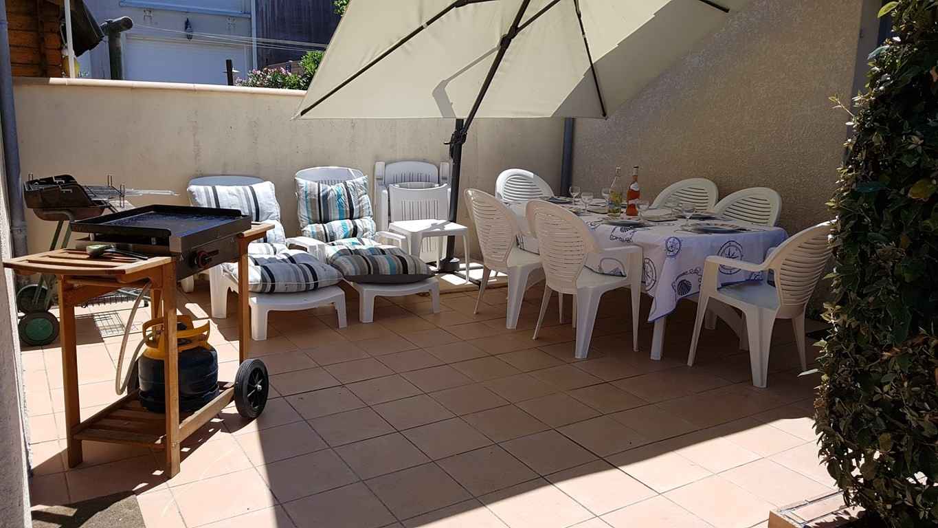 Agréable villa récente de 70m2 pour 7 personnes, sur un terrain privatif et clôturé de 300m2, avec piscine de 3x6m de profondeur 1.80m, sécurisée par une alarme, située dans un environnement calme, à 800m des plages et du centre-ville. terrasse avec mobilier de jardin et barbecue.