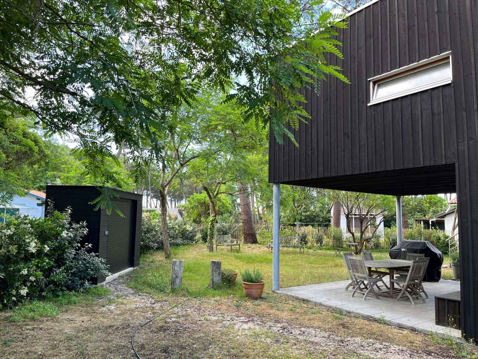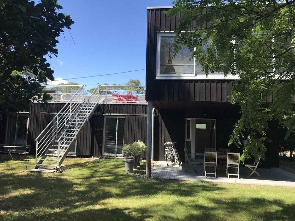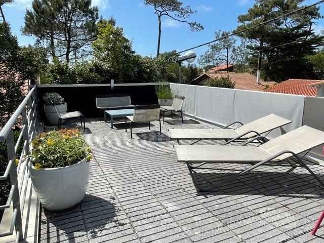 Maison d’architecte de conception moderne pour 6 personnes, spacieuse et très lumineuse d’environ 100m². orientation de la terrasse à l'étage sud ouest, la villa est située sur un terrain clôturé de 500m², dans un quartier calme de la station, à 800m de la plage et des commerces. garage à vélos.