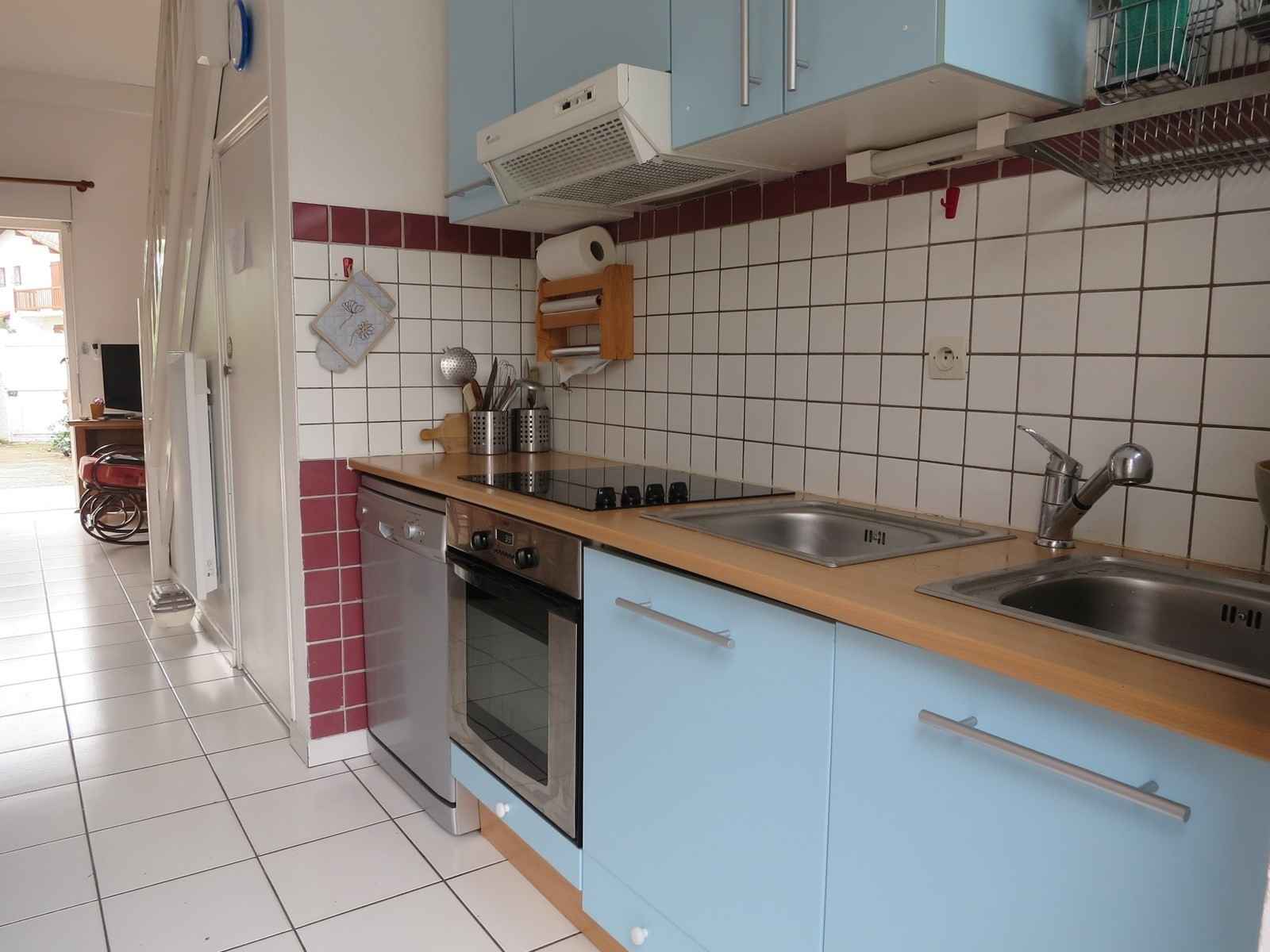 kitchenette : réfrigérateur-congélateur, lave-vaisselle, lave-linge, four, plaque vitrocéramique, micro-onde,