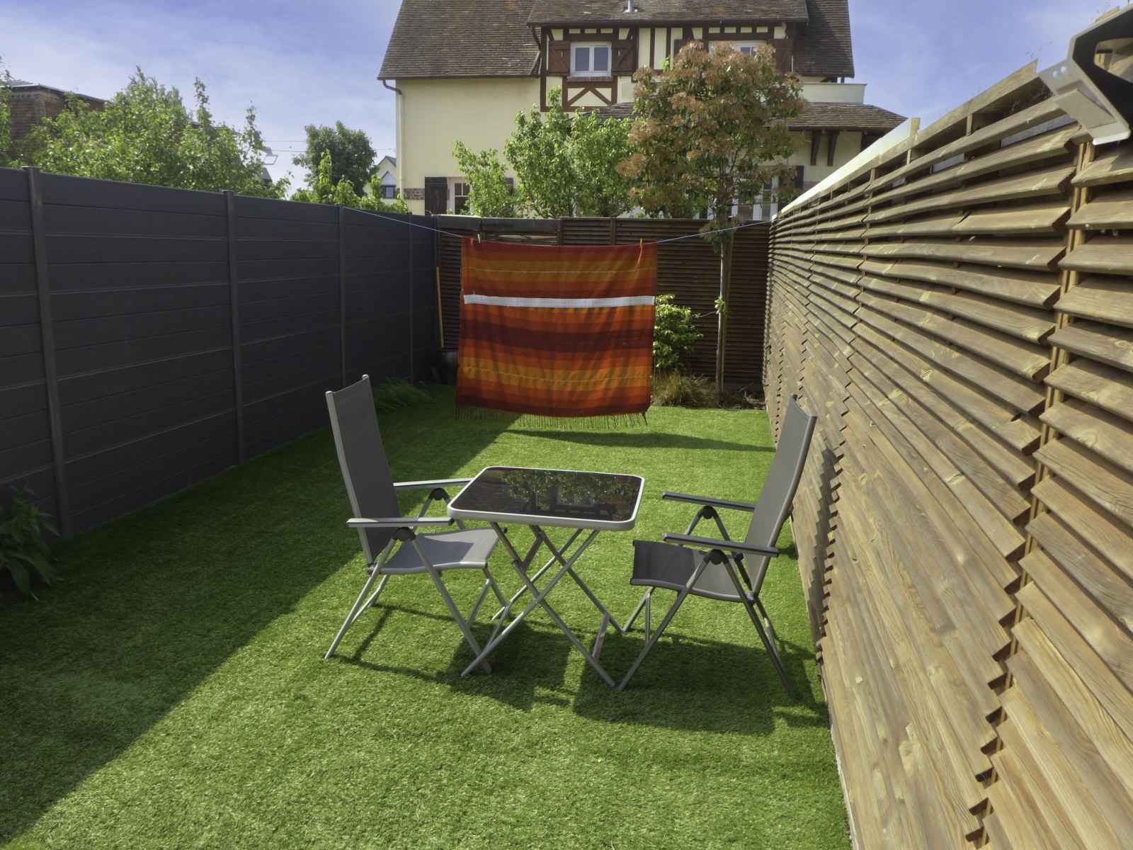 Maison mitoyenne "les Étourneaux". dans la localité, à 200 m du centre de cabourg, situation tranquille, à 950 m de la mer, à 950 m de la plage. a usage privé: jardin 60 m2 (clôturé). meubles de jardin, parking public possible dans la rue. magasins, magasin d'alimentation, supermarché 200 m, restaurant, bar 400 m, boulangerie 200 m, café