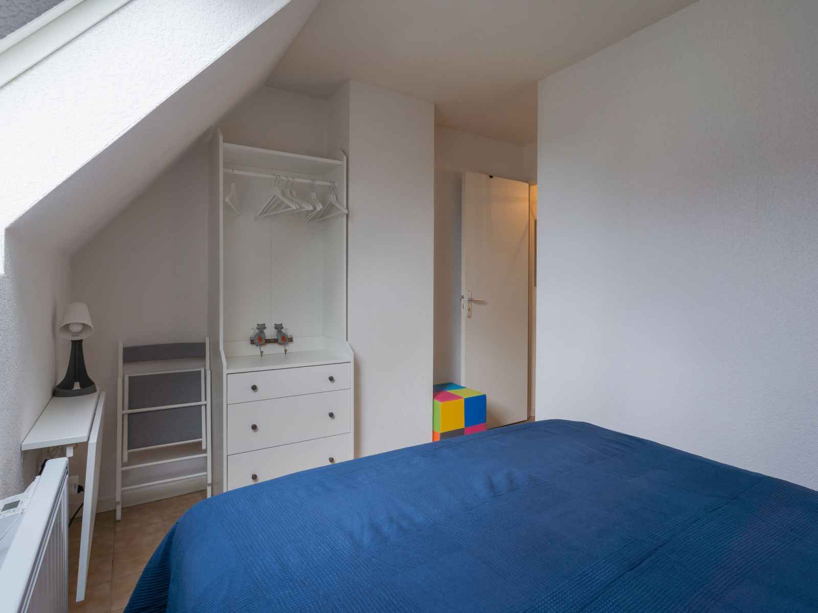 (160 cm, longueur 200 cm). 1 chambre avec 1 grand-lit (140 cm, longueur 190 cm). Salle de bains, WC séparé. Terrasse 9 m2, situation sud, jardin 150 m2, situation sud. A disposition: lave-linge, bois (en sus). Internet (Connexion WIFI, en sus). Place de parking No 402. Veuillez noter: logement non-fumeur. Détecteur de fumée. Annonce d'un particulier (art 155, IV du CGI).