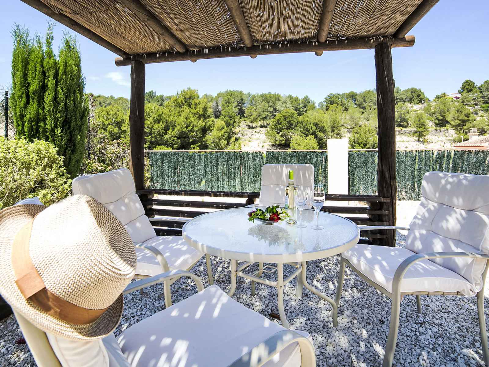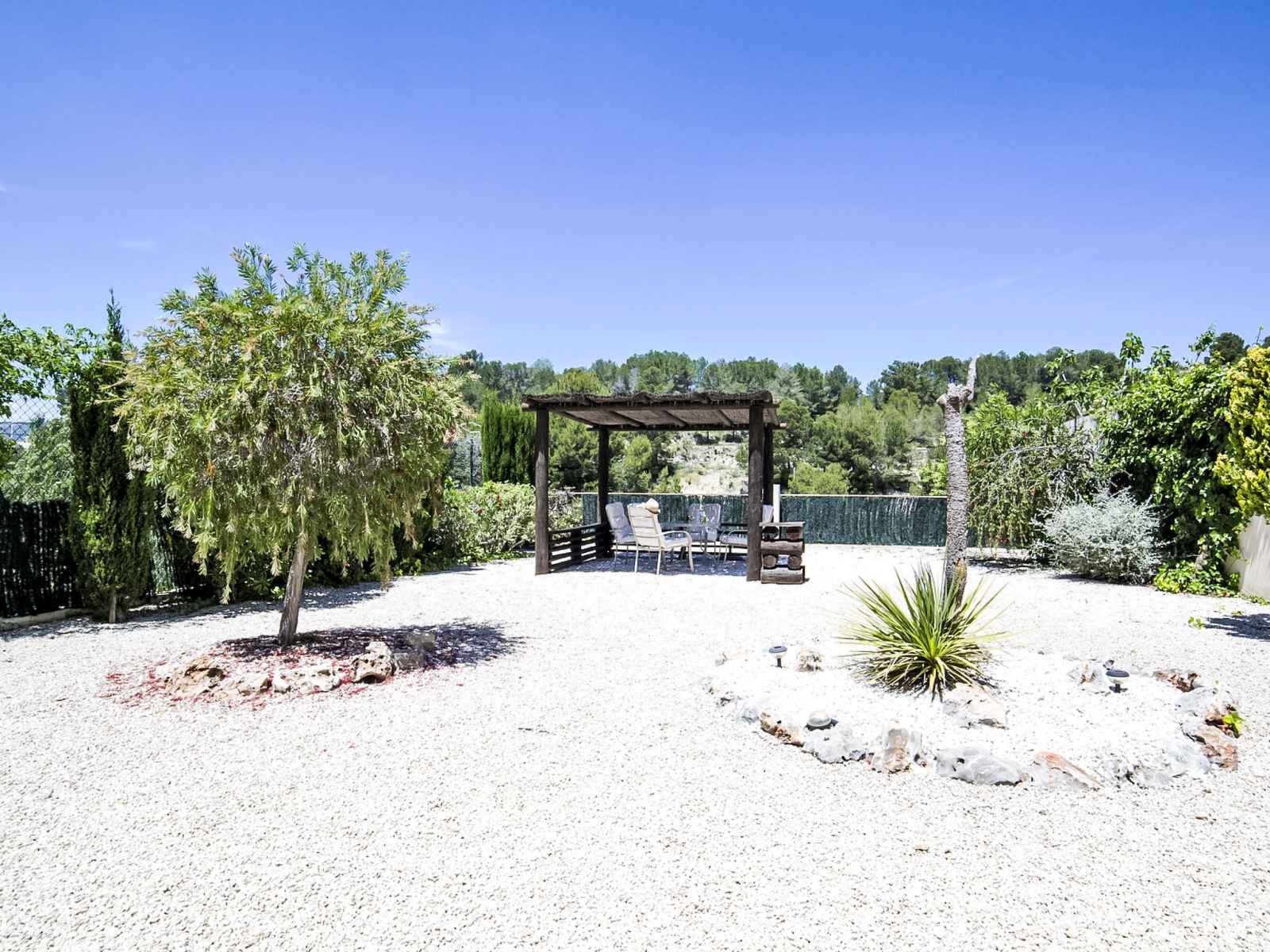 Empedrola: belle maison mitoyenne accueillante "una". dans la localité, à 5 km du centre de calpe, situation tranquille, ensoleillée, à 5 km de la mer, à 5 km de la plage. en commun: terrain (clôturé) avec pelouse et arbres, piscine (disponibilité saisonnière: 01.jan. - 31.dec.). bassin pour les enfants. a usage privé: terrain