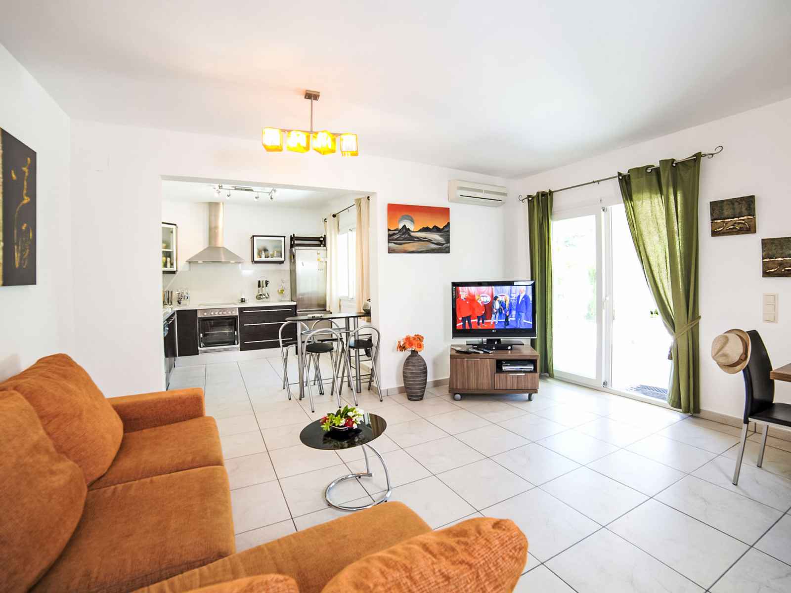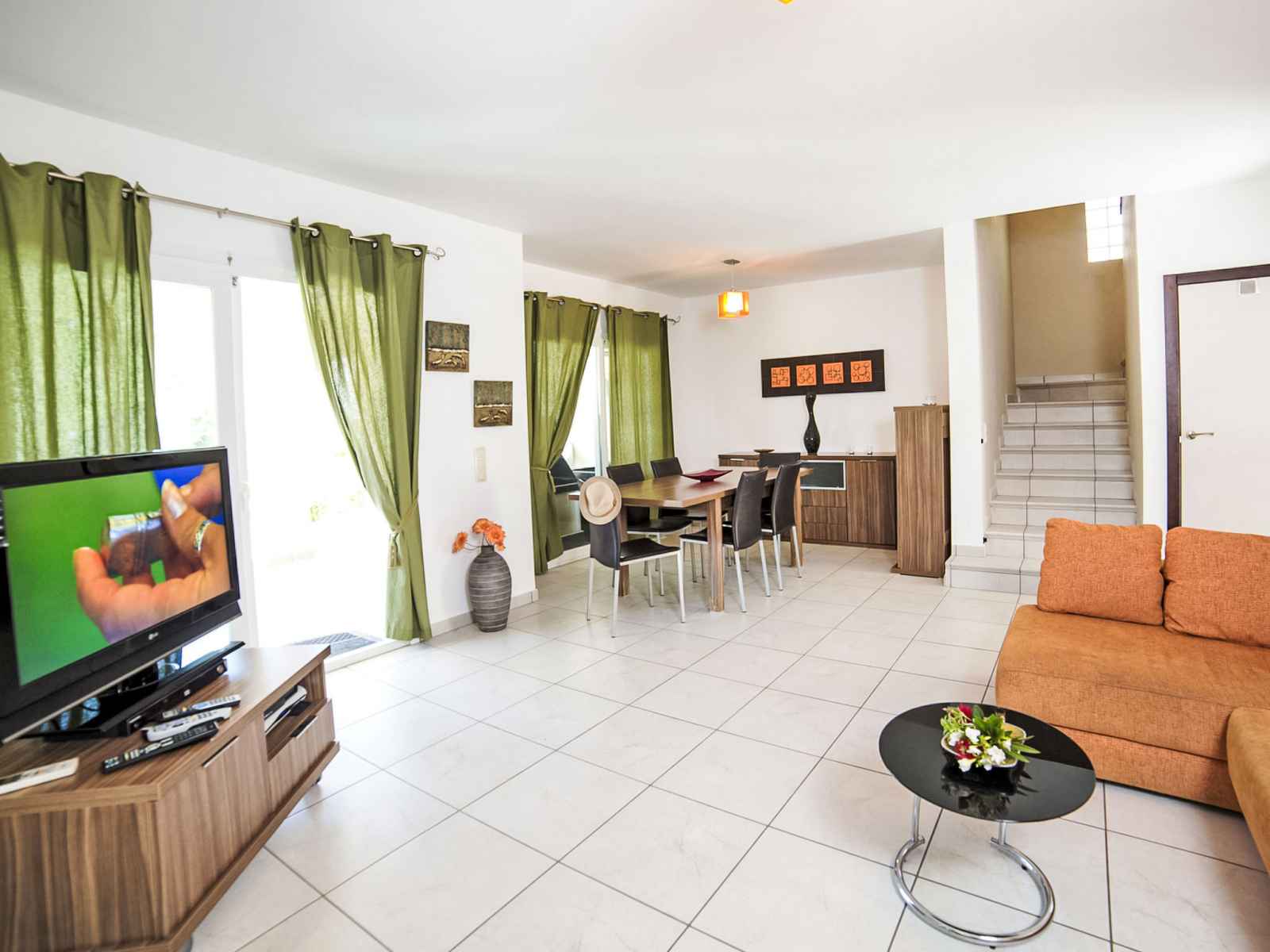 "una", maison jumelée 4 pièces sur 2 niveaux. spacieux et clair, aménagement confortable et agréable: séjour/salle à manger avec tv (satellite), télévision numérique, air-conditionné et chauffage à air chaud. sortie sur la terrasse. 1 chambre avec 1 lit double, air-conditionné et chauffage à air chaud. cuisine ouverte (four,