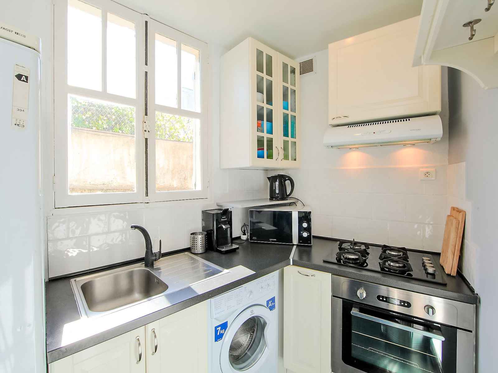 au gaz. Terrasse 6 m2. Meubles de terrasse. Vue éloignée sur la mer. A disposition: lave-linge. Internet (Connexion WIFI, en sus). Veuillez noter: logement non-fumeur parking pour 1 petite voiture. Détecteur de fumée. 06029004100SM