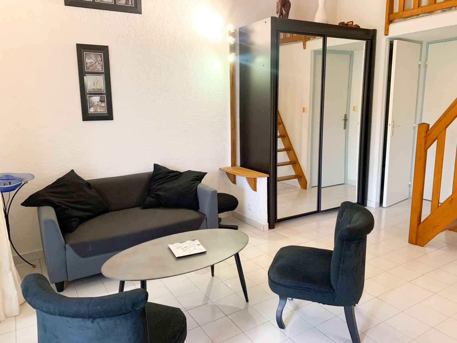 Maison mitoyenne 2 pièces 40 m2 sur 2 niveaux. logement idéal pour 2 adultes + 2 enfants. rénovée en 2015, aménagement confortable et agréable: séjour/salle à manger avec baie vitrée avec tv (écran plat), air-conditionné et chauffage à air chaud. sortie sur la terrasse, sur la loggia, sur le jardinet. 1 chambre avec 1 grand-lit (160