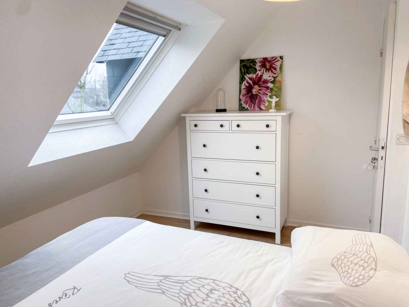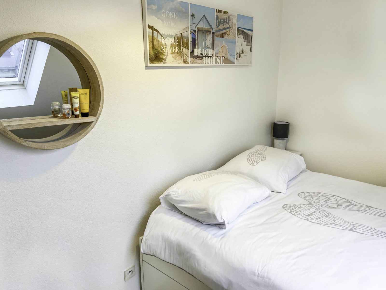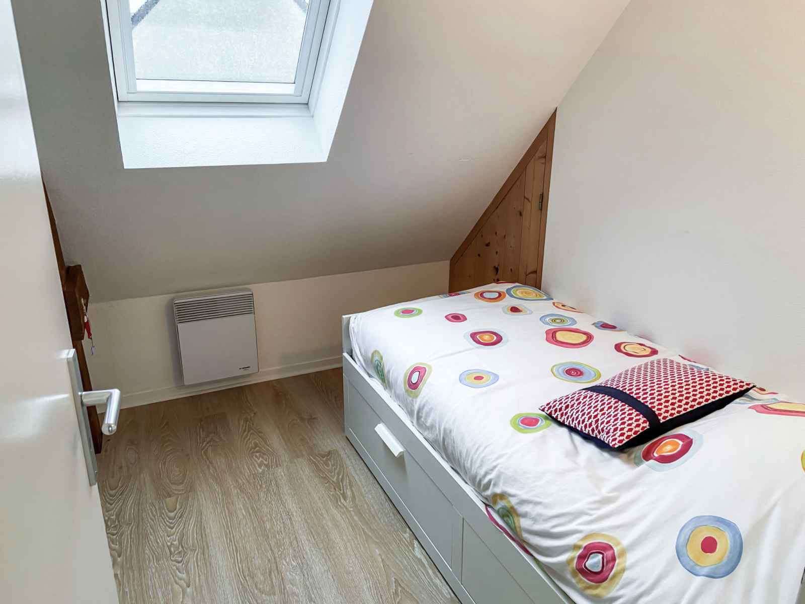 Douche/WC. À l'étage supérieur: 1 chambre avec 1 grand-lit (1 x 160 cm, longueur 190 cm). 1 chambre avec 2 lits (90 cm, longueur 190 cm). 1 chambre avec 2 lits (80 cm, longueur 190 cm). Douche/WC. Chauffage électrique. Terrasse 30 m2, situation sud, jardin 250 m2. Meubles de terrasse, barbecue, chaises longues (2). A disposition: lave-linge, sèche-linge, fer à repasser, sèche-cheveux. Internet (Connexion WIFI, gratuit). Place de parking près de la maison. Veuillez noter: logement non-fumeur. Détecteur de fumée. Annonce d'un particulier (art 155, IV du CGI). 56034000615FE