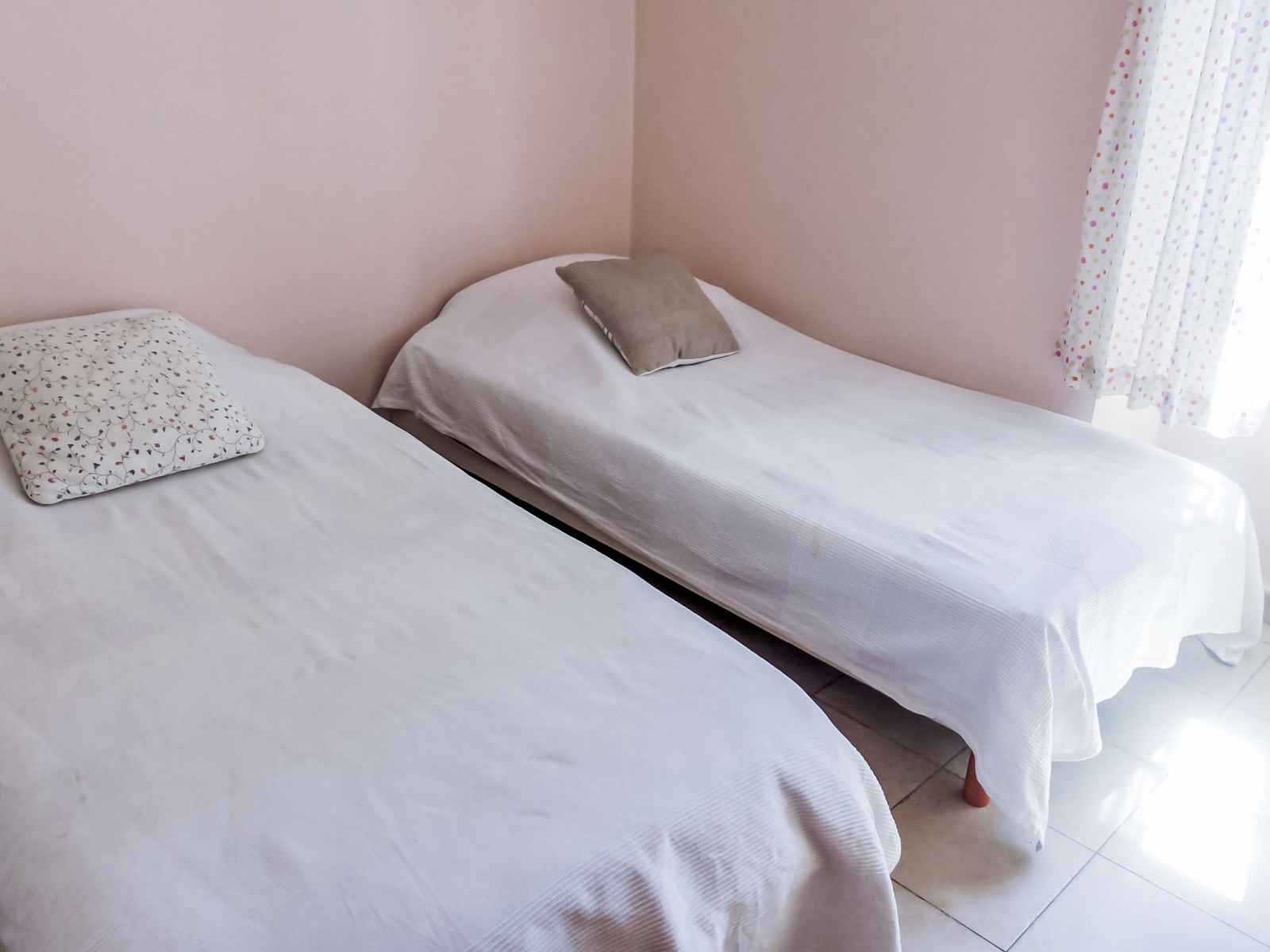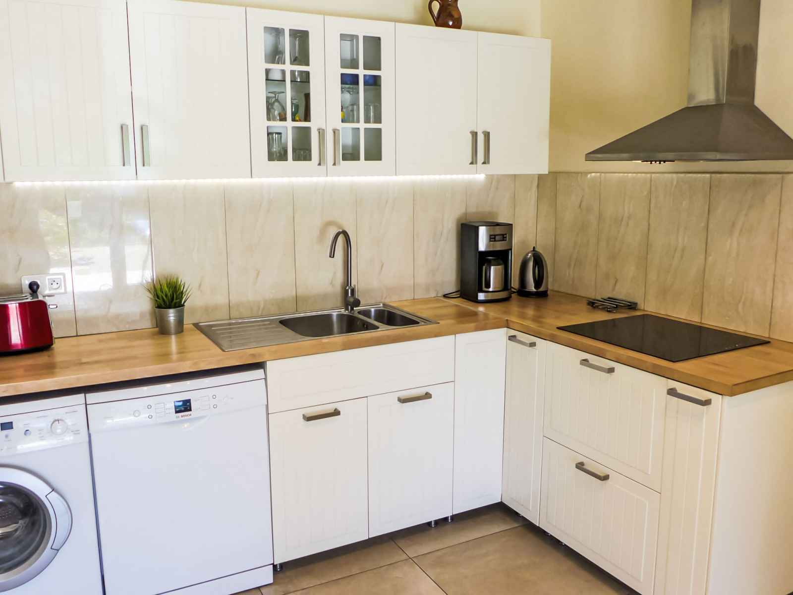 supérieur: 1 chambre avec 1 lit (90 cm, longueur 190 cm), air-conditionné. 1 chambre avec 2 lits (90 cm, longueur 190 cm), air-conditionné. 1 petite chambre avec 1 grand-lit (140 cm, longueur 190 cm), air-conditionné. 1 chambre avec 1 grand-lit (160 cm, longueur 190 cm), douche/WC (privé) air-conditionné. Salle de bains, bain/WC. Chauffage électrique. Grande terrasse 60 m2, situation sud. Meubles de terrasse, barbecue électrique, chaises longues (2). A disposition: lave-linge, fer à repasser. Internet (Connexion WIFI, gratuit). Place de parking (3 Voitures). Veuillez noter: TV seulement FR, EN, DE. Détecteur de fumée.