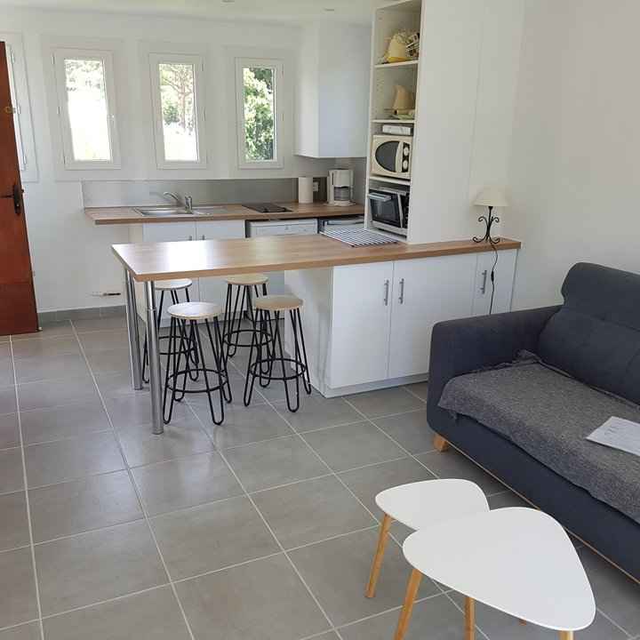 Maison mitoyenne 5 pièces 100 m2 sur 2 niveaux. aménagement confortable et agréable: séjour/salle à manger 28 m2 avec tv (écran plat). sortie sur la terrasse. cuisine (four, lave-vaisselle, 4 plaques à induction, grille-pain, bouilloire électrique, micro-ondes, cafetière électrique). sortie sur la terrasse. wc séparé. À l'étage