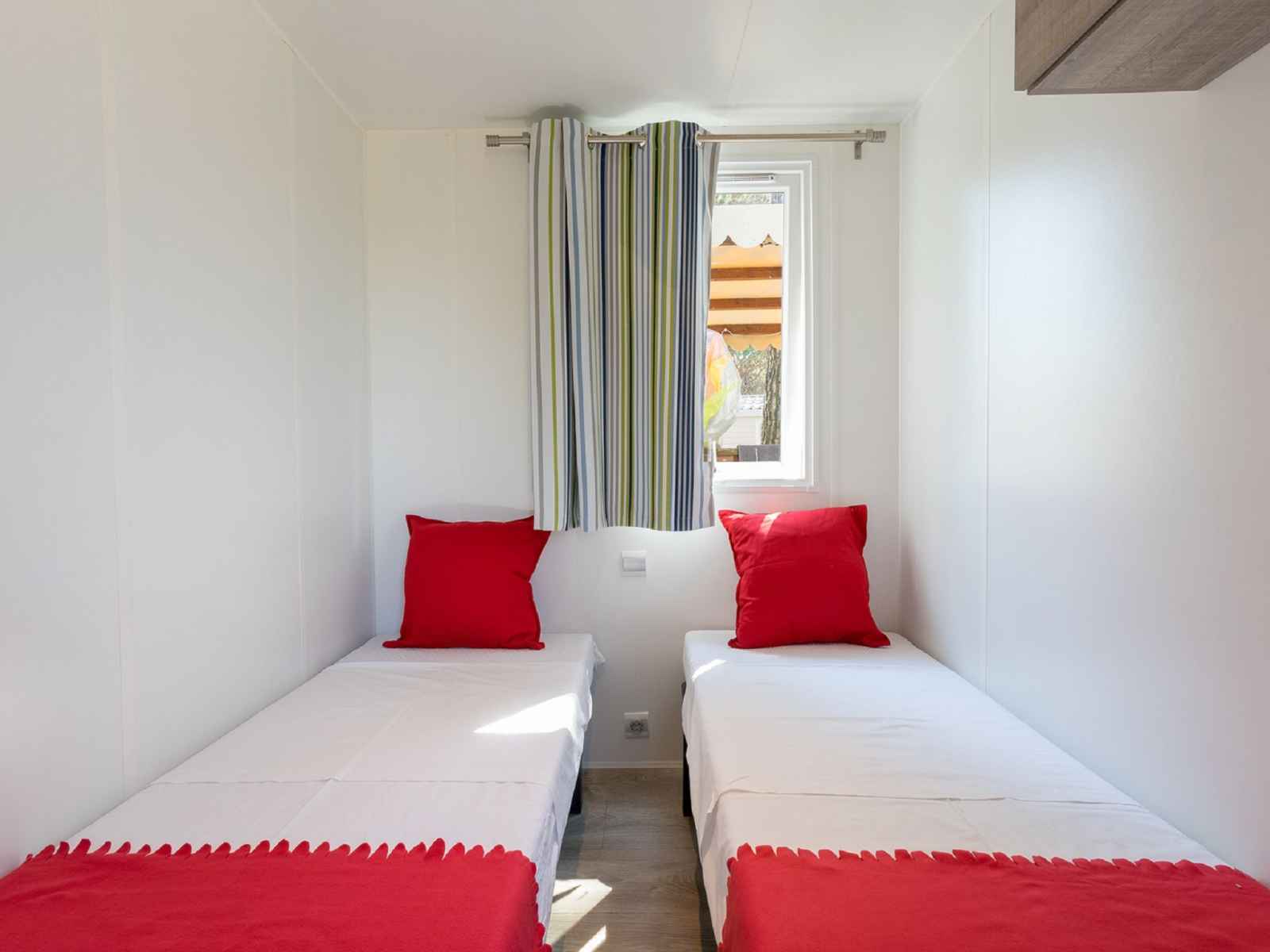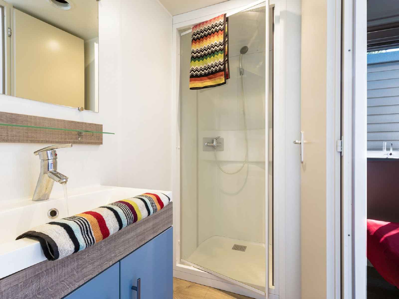 "baia classic", 3 pièces mobil home 22 m2. aménagement fonctionnel: séjour/salle à manger avec table pour les repas et tv (satellite). 1 chambre avec 1 grand-lit (140 cm). 1 chambre avec 2 lits (70 cm). coin cuisine (4 feux, congélateur). douche/wc. air-conditionné, chauffage à air chaud (en sus). terrasse couverte. meubles de terrasse.