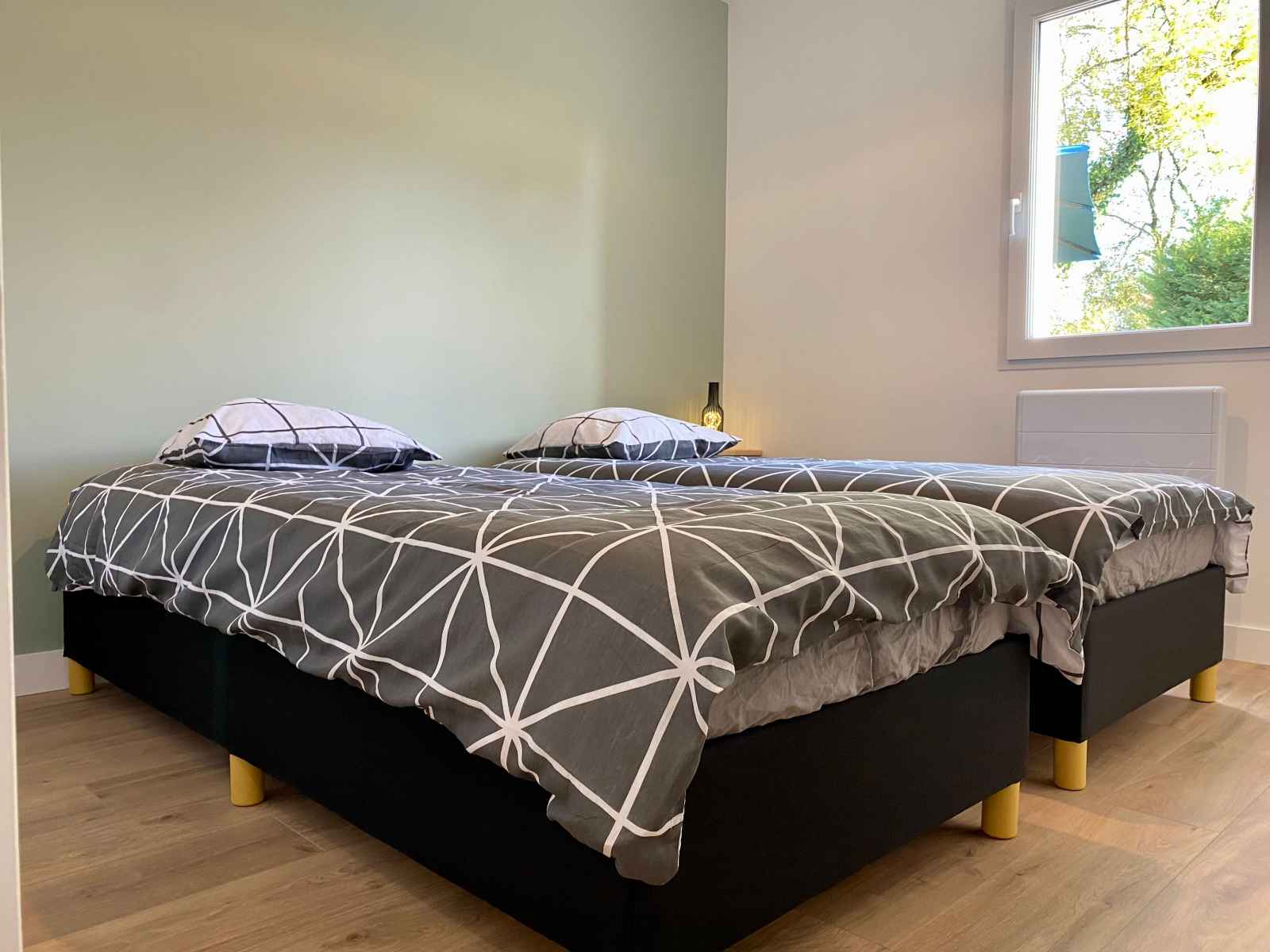 propriété + garage voiture. 2 vélos adultes à disposition. Plain pied : salon/séjour avec cuisine ouverte, 3 chambres (1 et 2 : lit 160x200, 3: 2 lits 90x200), salle d'eau et WC indépendant. Equipements inclus : lit/chaise bébé sur demande. Pas d'accès Wifi. Compris: électricité et chauffage électrique. Non compris: draps, linge de toilette et taxe de séjour. Forfait ménage obligatoire pour la clientèle professionnelle (140€).
