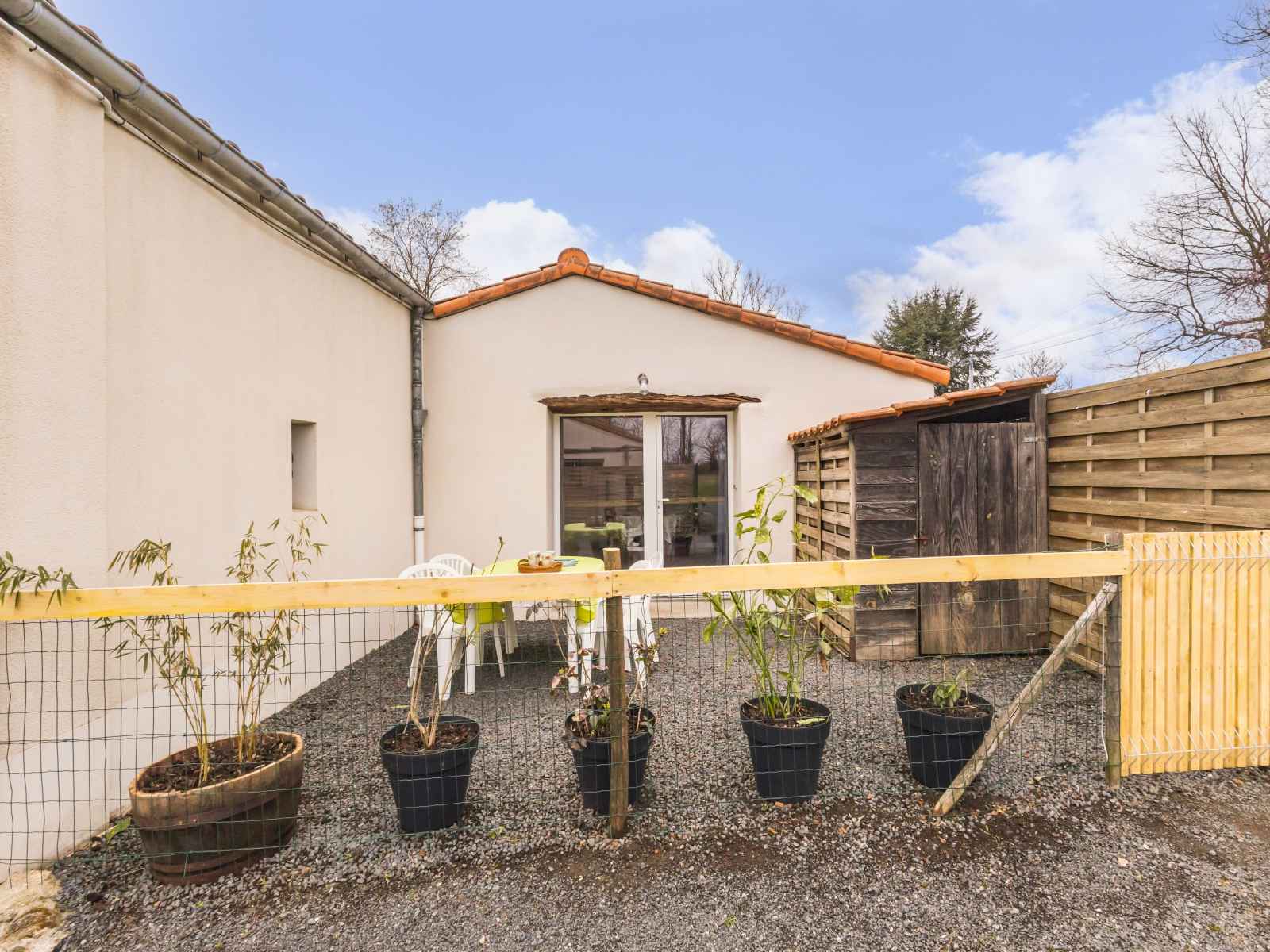 grand espace autour du gîte avec terrasse et jardin clos de 160 m², sans vis-à-vis. stationnement privatif dans la