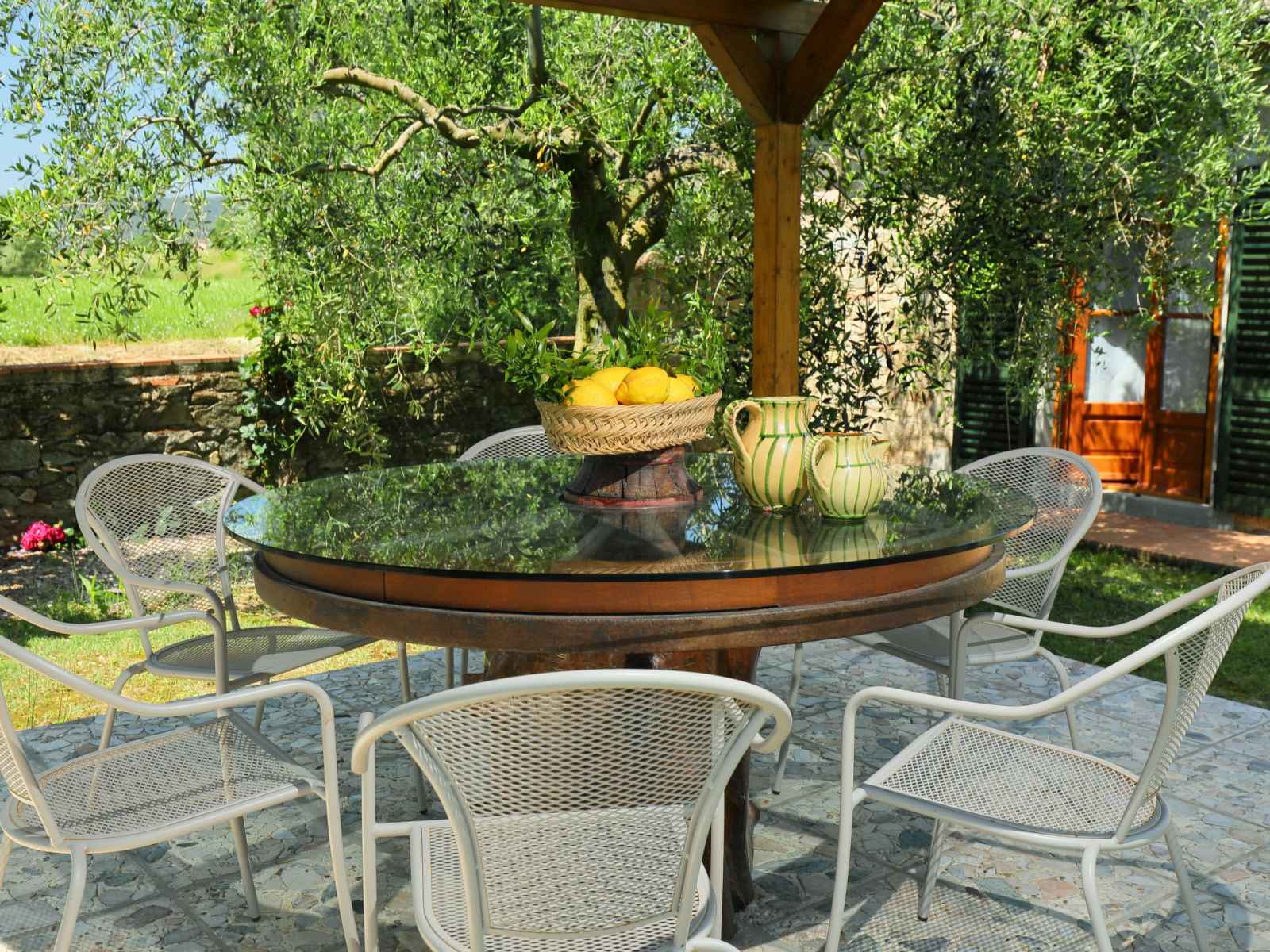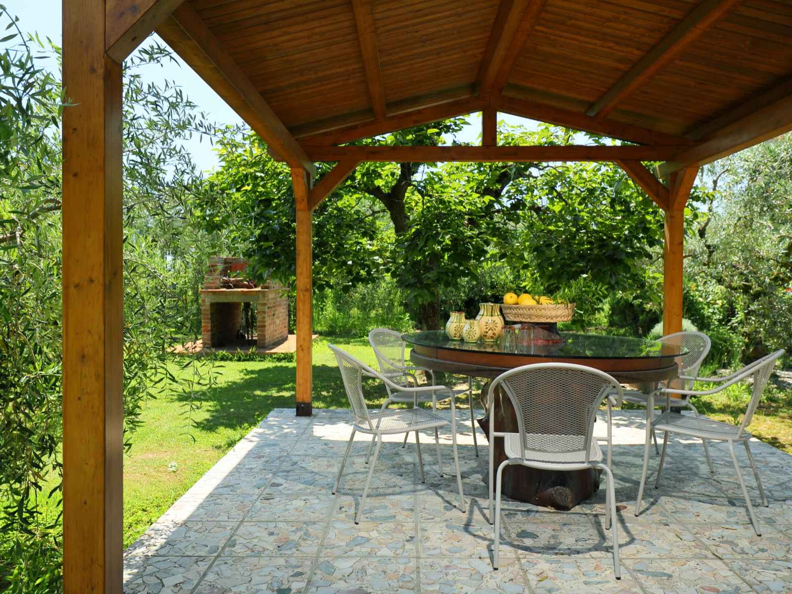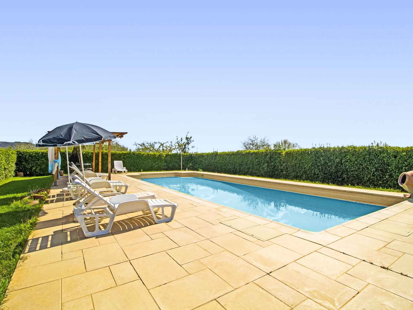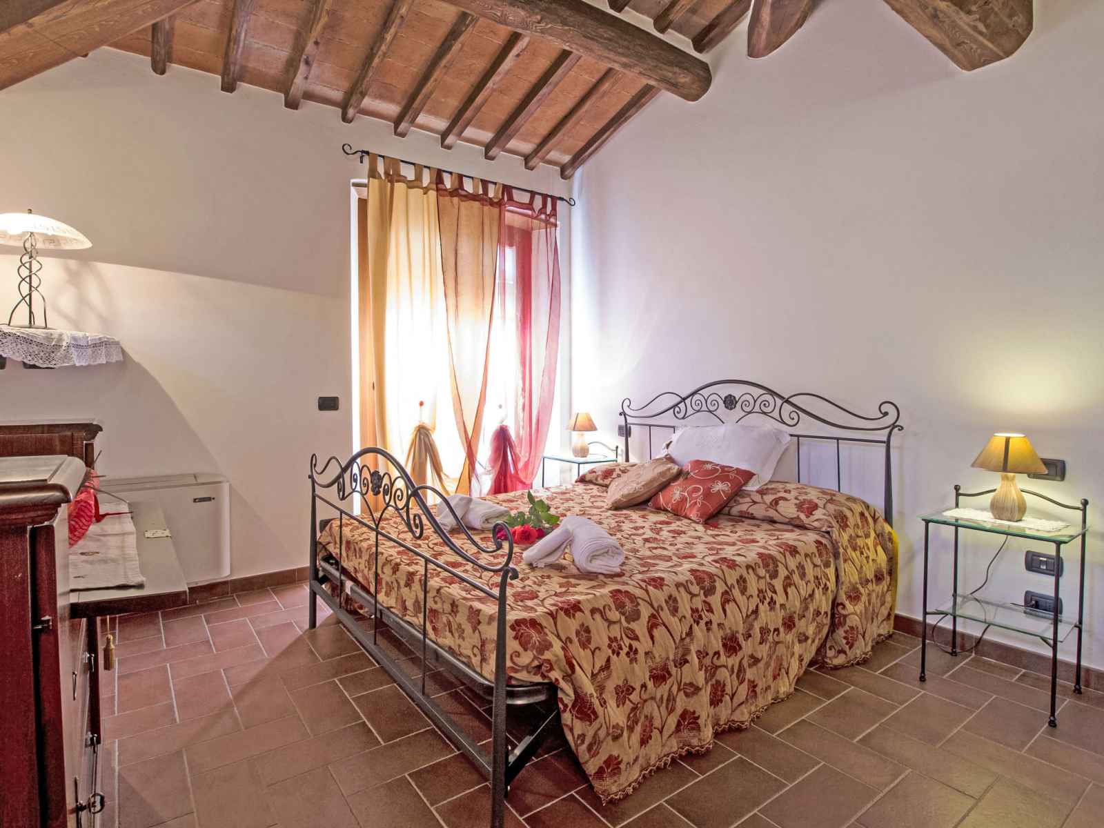 douche/wc dans l'espace piscine, barbecue. a usage privé: jardinet (15 m2), terrasse. cuisinier possible (en sus). place de parking (couvert). supermarché 2.6 km, restaurant 450 m, gare ferroviaire "camucia" 2 km, plage de sable "la merangola" 20 km, baignade en lac "trasimeno" 20 km. attractions à proximité: castiglion fiorentino 11 km, foiano della chiana 18 km, castiglion del lago 19 km, passignano sul trasimeno 22 km, arezzo 32 km, rapolano terme 43 km. veuillez noter: voiture recommandée. résidence avec portail électrique. le propriétaire habite sur le même terrain. autoroute à proximité.