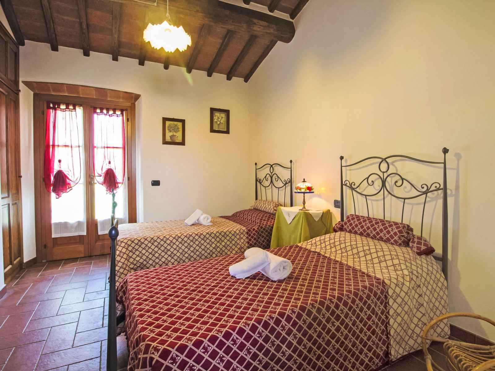 Ferme rustique, confortable, année de construction 2006, environnée par les champs. 3 appartements dans la même entité. dans le hameau de camucia, à 5 km du centre de cortona, situation ensoleillée, à 20 km du lac. en commun: jardin, piscine cloturée (5 x 12 m, profondeur 120 - 220 cm, disponibilité saisonnière: 01.jun. - 30.sep.).