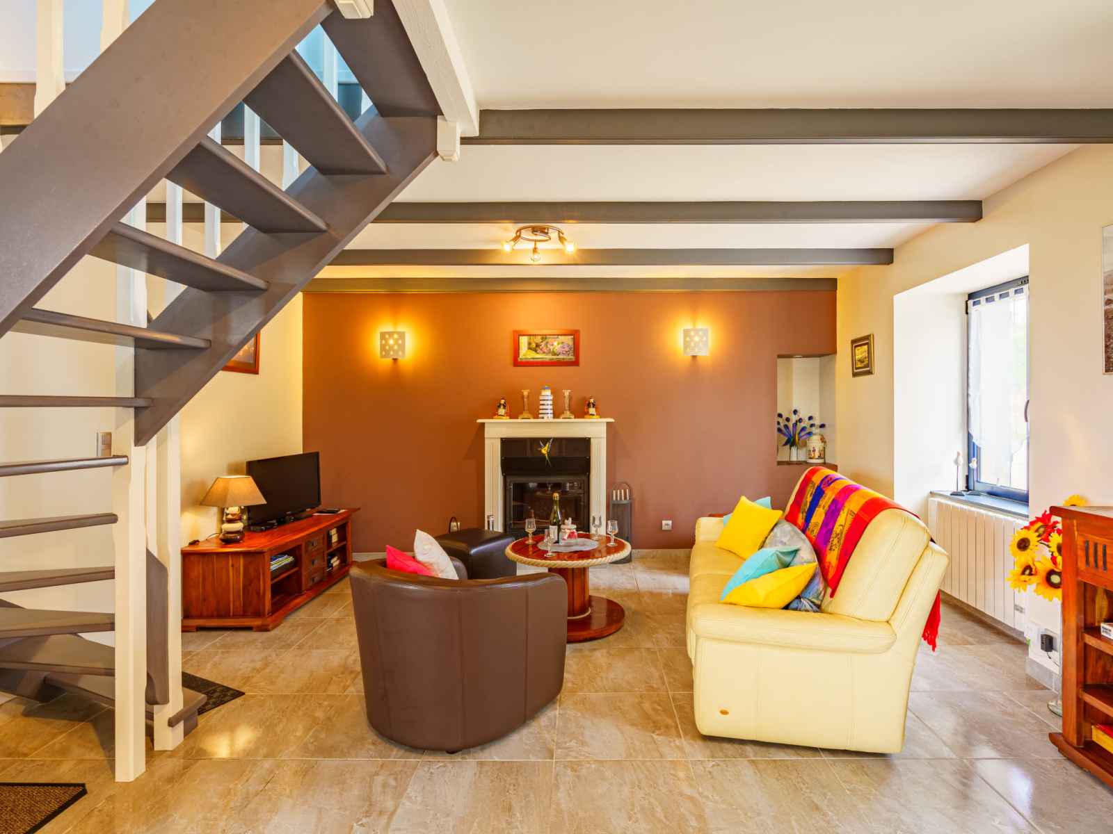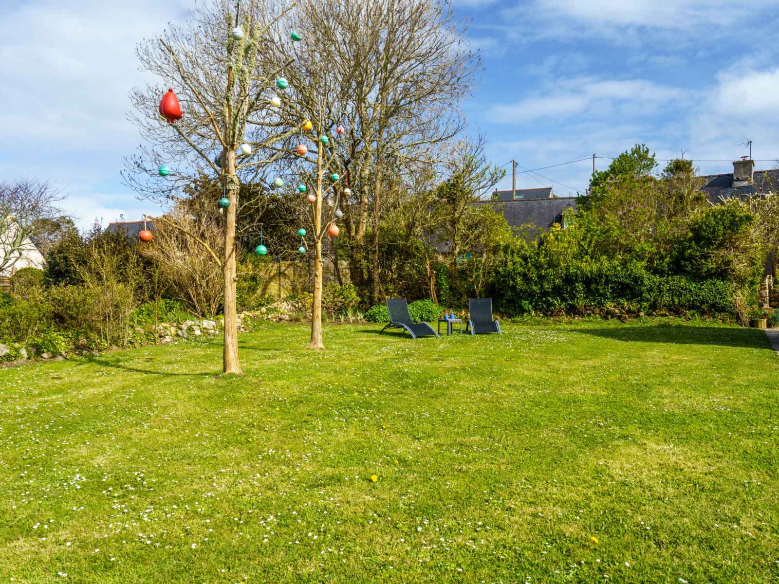 "du bout du monde", maison 3 pièces 80 m2 sur 2 niveaux. aménagement agréable et de bon goût: séjour/salle à manger avec cheminée, table pour les repas, tv (satellite) et chaîne stéréo. sortie sur la terrasse. cuisine ouverte (four, lave-vaisselle, 4 plaques vitrocéramiques, grille-pain, bouilloire électrique, micro-ondes, cafetière