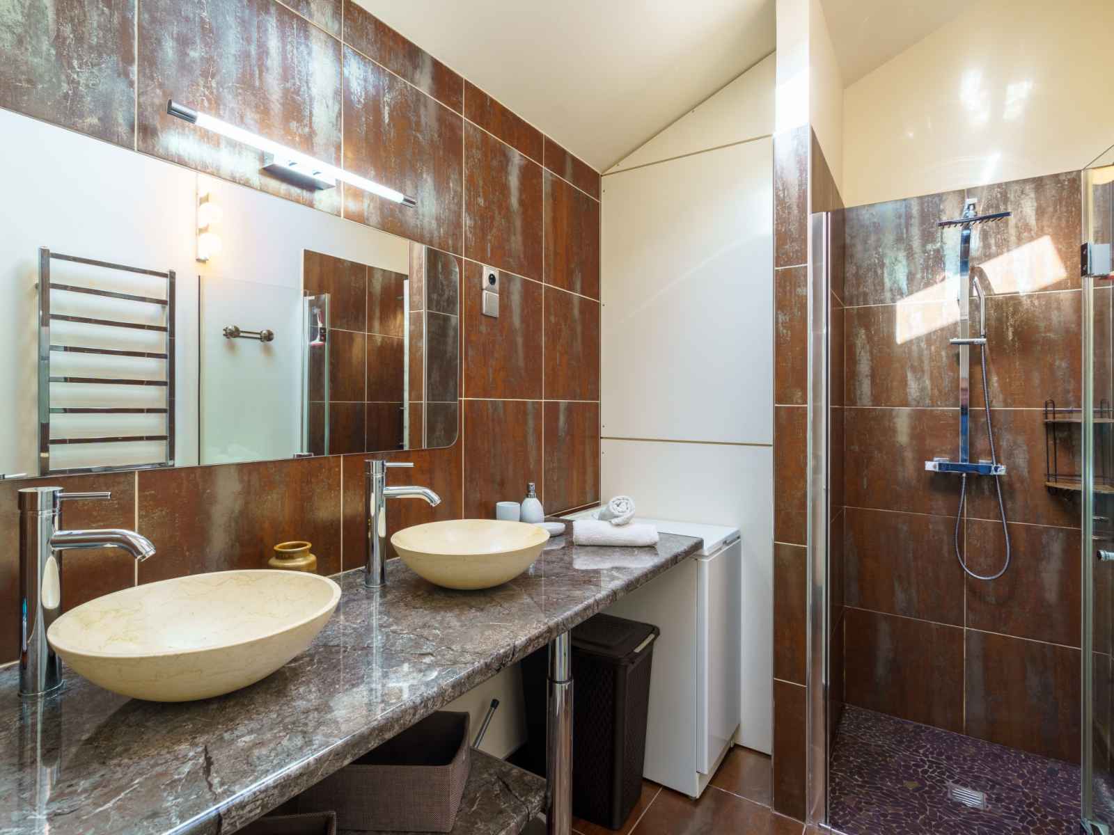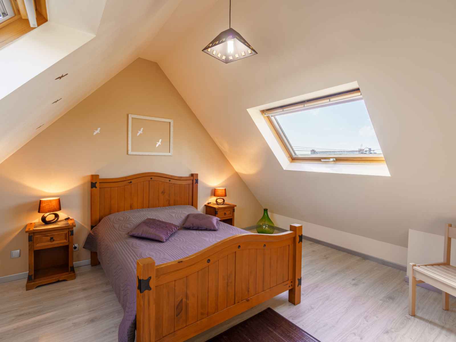 électrique). Douche, WC séparé, double vasque. À l'étage supérieur: 1 chambre, mansardée avec 1 grand-lit (140 cm, longueur 190 cm). 1 chambre, mansardée avec 2 lits (90 cm, longueur 190 cm). WC séparé. Chauffage électrique. Sol en parquet. Terrasse. Meubles de terrasse, barbecue (portable), chaises longues (4). A disposition: lave-linge, fer à repasser, chaise haute pour enfant, lit bébé. Internet (Connexion WIFI, gratuit). Veuillez noter: maison non-fumeur. Maximum 1 animal/ chien autorisé. Détecteur de fumée.