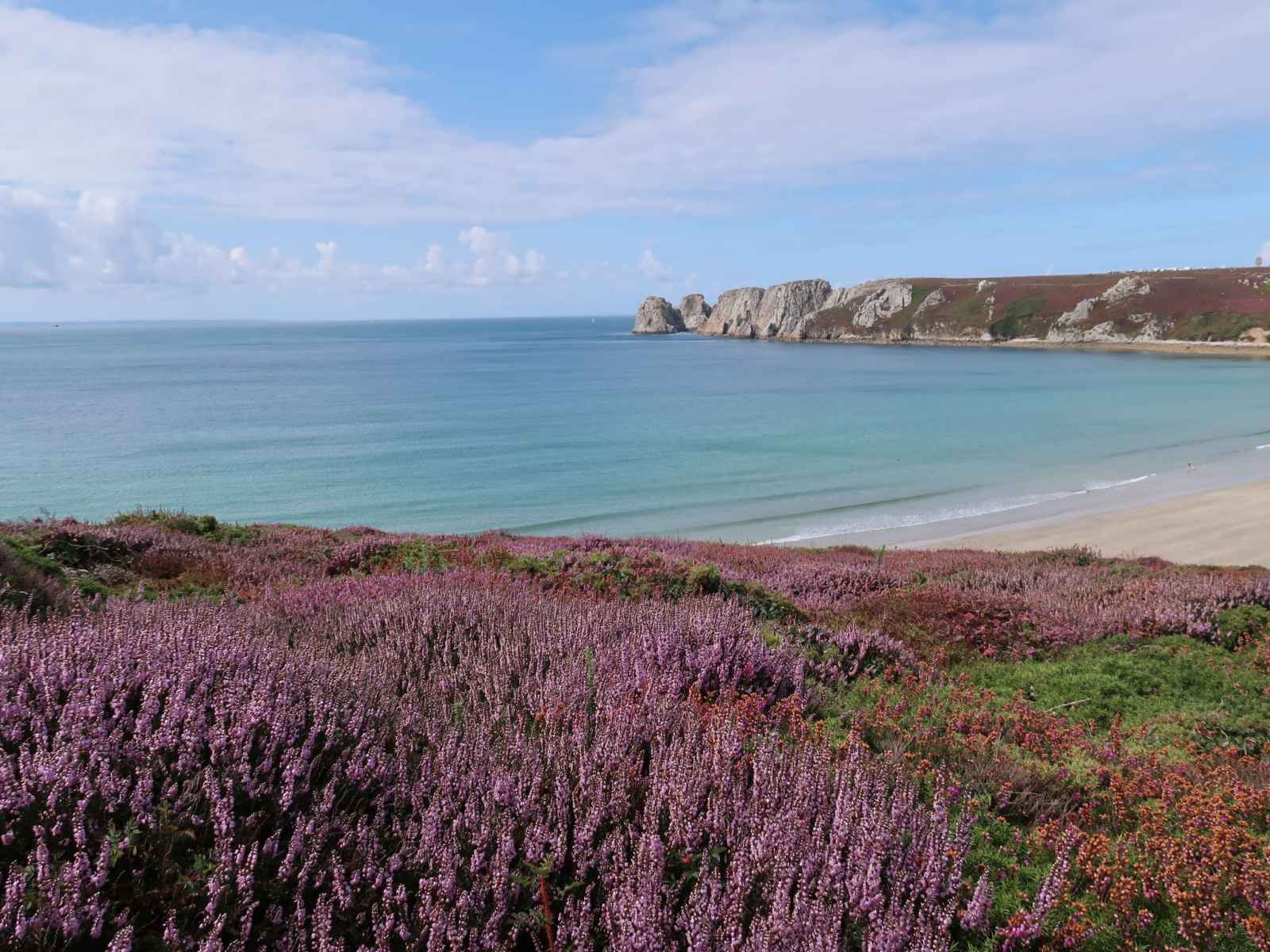 plage de sable "plage de goulien" 1.2 km. port plaisance 5 km, ecole de surf 1.2 km, ecole de voile 5 km.