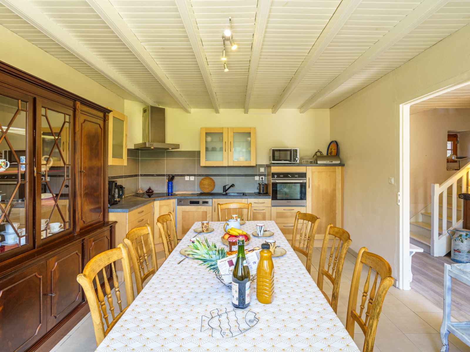 "ty jos", maison 3 pièces 90 m2 sur 2 niveaux. aménagement fonctionnel et plaisant: séjour/salle à manger avec cheminée, table pour les repas et tv (satellite). cuisine (four, lave-vaisselle, 3 plaques à induction, grille-pain, bouilloire électrique, micro-ondes, cafetière électrique) avec table pour les repas. douche/wc. chauffage