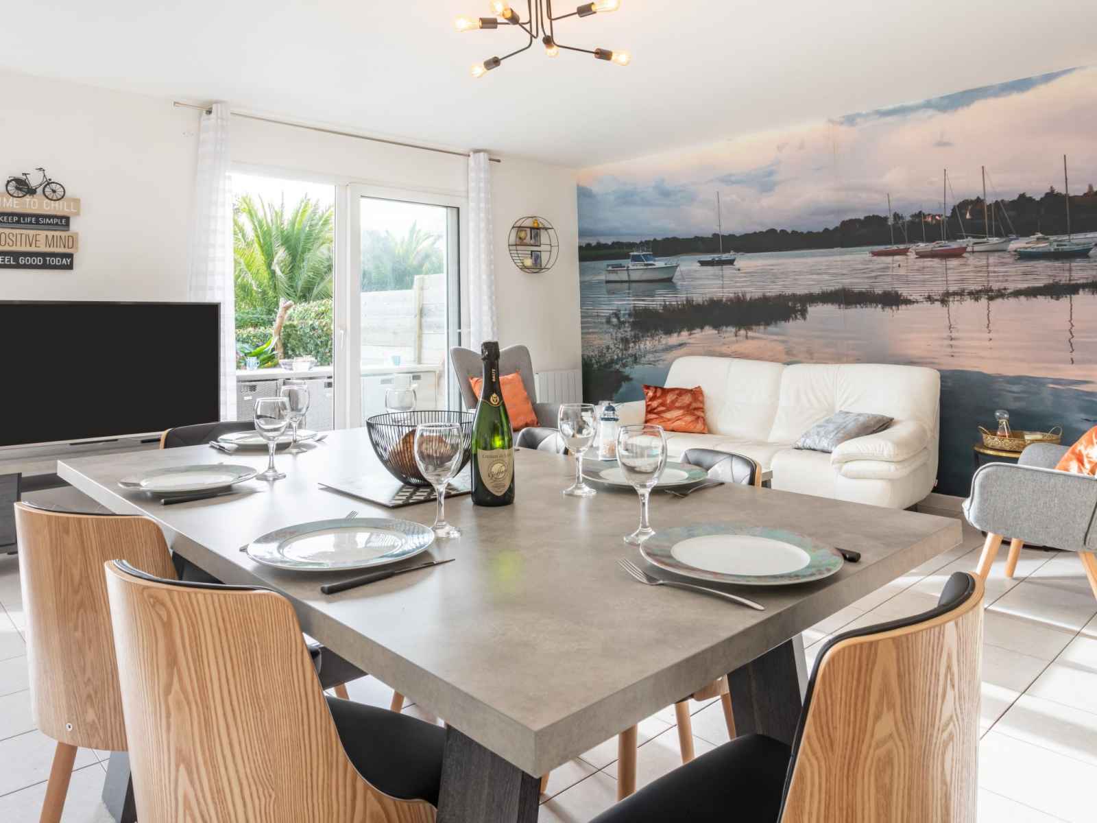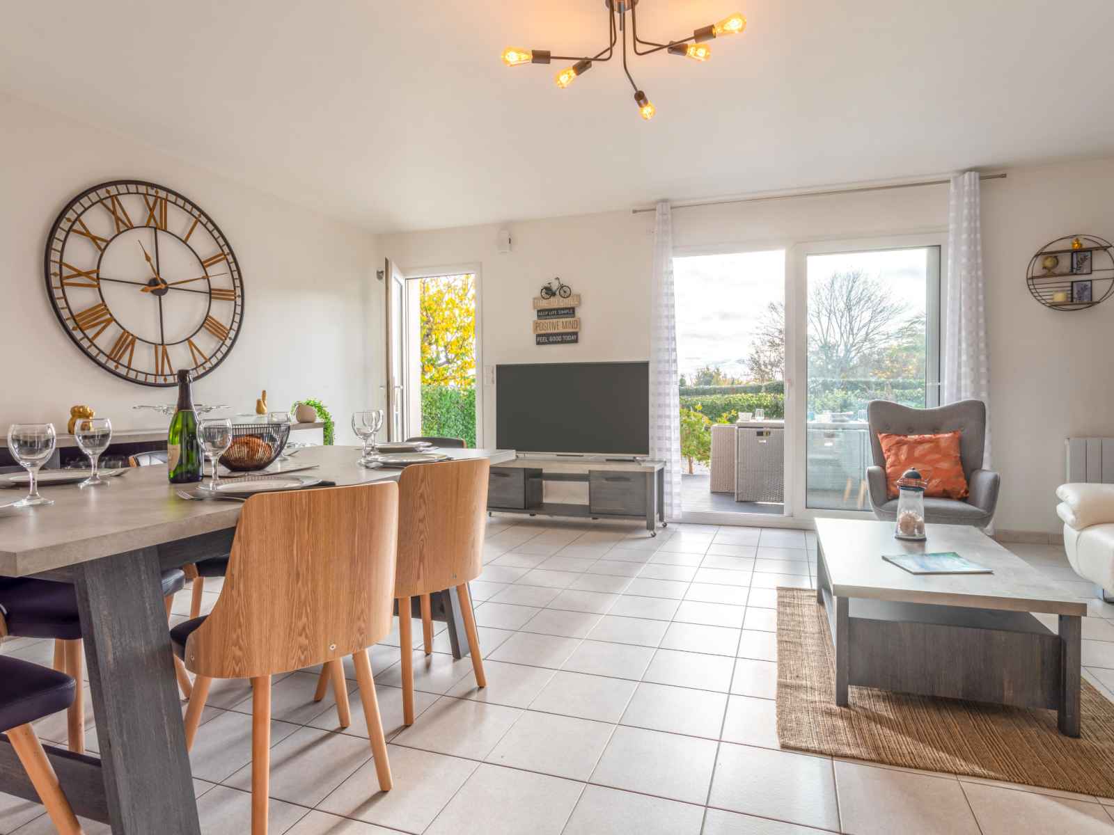 Maison mitoyenne 4 pièces 90 m2 sur 2 niveaux. clair, rénovée en 2021, aménagement confortable et agréable: séjour/salle à manger avec tv (écran plat). sortie sur la terrasse. cuisine ouverte (4 plaques de cuisson, four, lave-vaisselle, grille-pain, bouilloire électrique, micro-ondes, cafetière électrique). wc séparé. chauffage