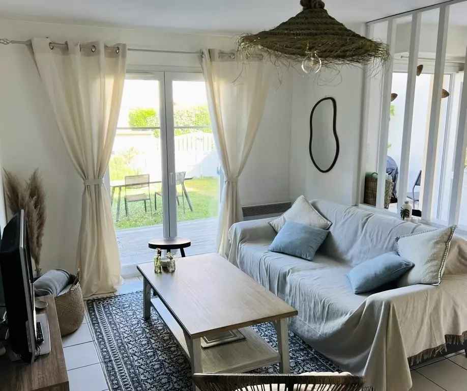 Votre location de vacances comporte : 1 séjour, 1 cuisine, 2 chambres, 1 salle de bain rénovée, 1 wc séparé, 1 terrasse, 1 jardin et 1 place de parking privative.