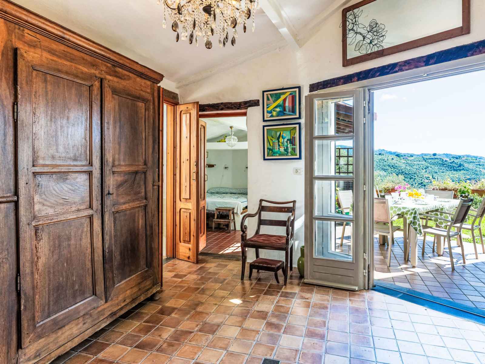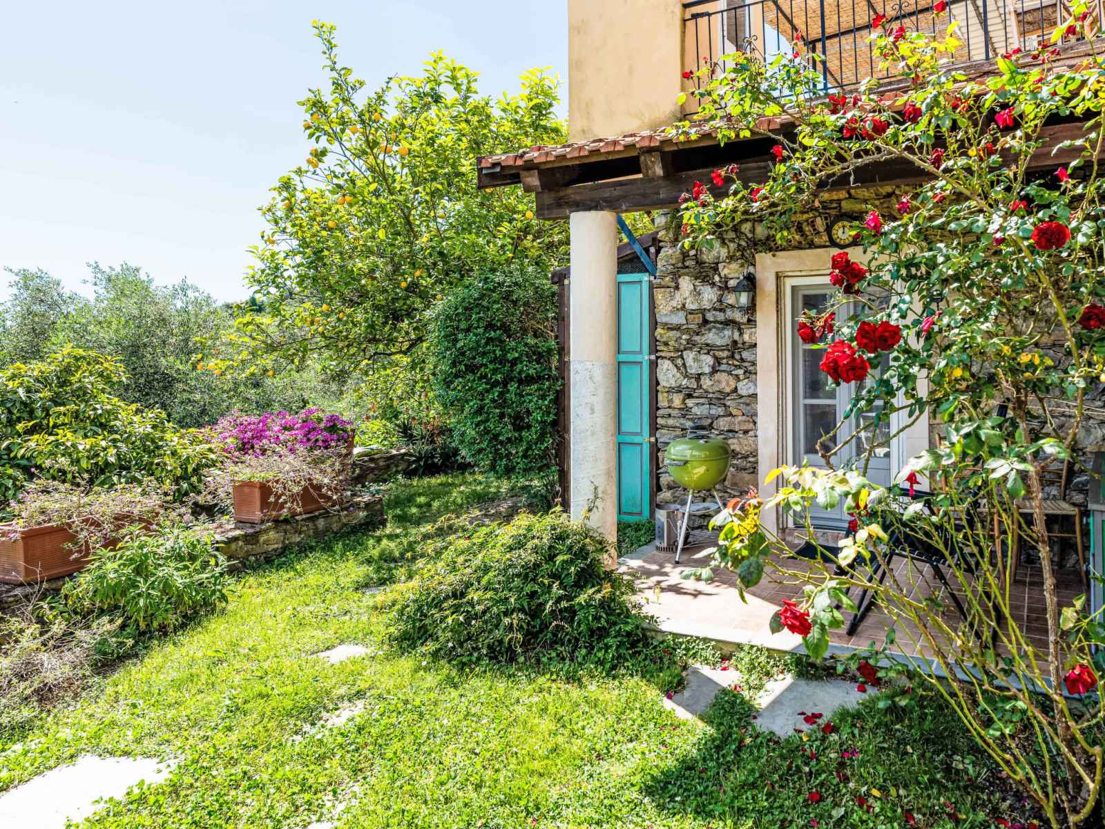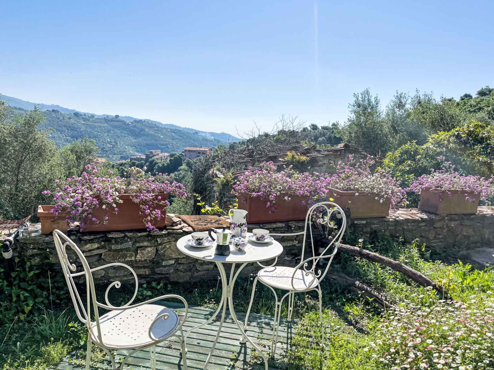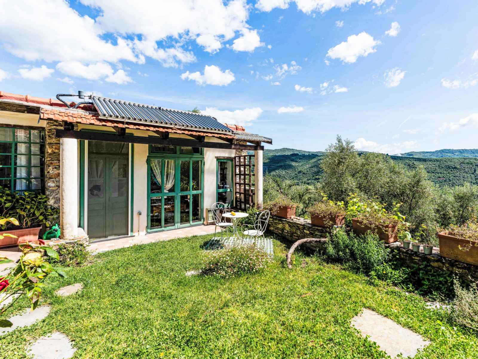Maison de maître "sul cammino", 227 m au dessus du niveau de la mer, de 2 étages, rénovée, environnée par les arbres et prés. dans le hameau de ramelli avec 2 maisons, à 3 km du centre de dolcedo, situation tranquille, ensoleillée sur une colline, à 15 km de la mer. a usage privé: terrain à l'état naturel 1'000 m2, petit jardin