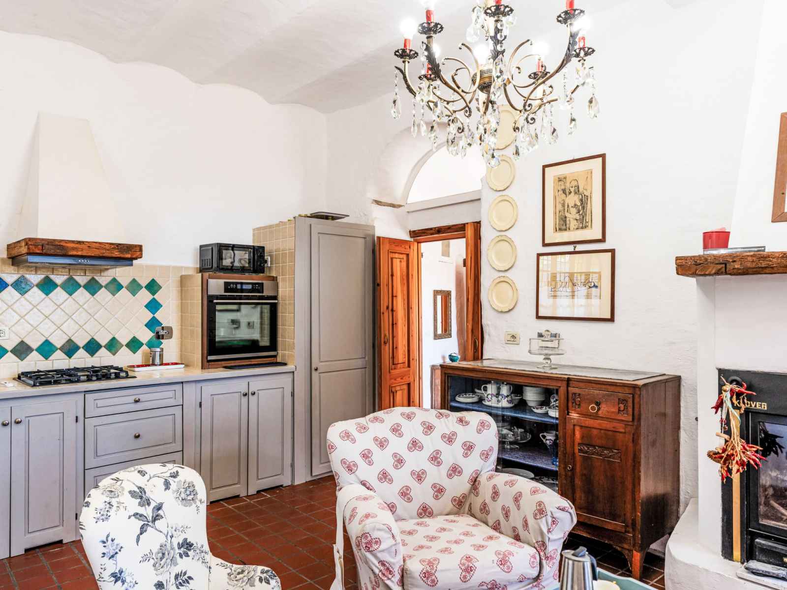 congélateur, cafetière électrique) avec table pour les repas, poêle suédois. 2 douches/WC. Possibilité de chauffage uniquement du 01.11. au 30.04. À l'étage supérieur: séjour/chambre à coucher avec 2 divans-lits doubles (2 x 140 cm, longueur 200 cm), douche/WC. Mobilier confortable de style campagnard. Meubles de terrasse, barbecue. Belle vue panoramique sur les alentours. A disposition: lave-linge. Internet (Connexion WIFI). Veuillez noter: maximum 2 animaux/ chiens autorisés. Détecteur de fumée, extincteur. IT008030C2OLLPDCHM