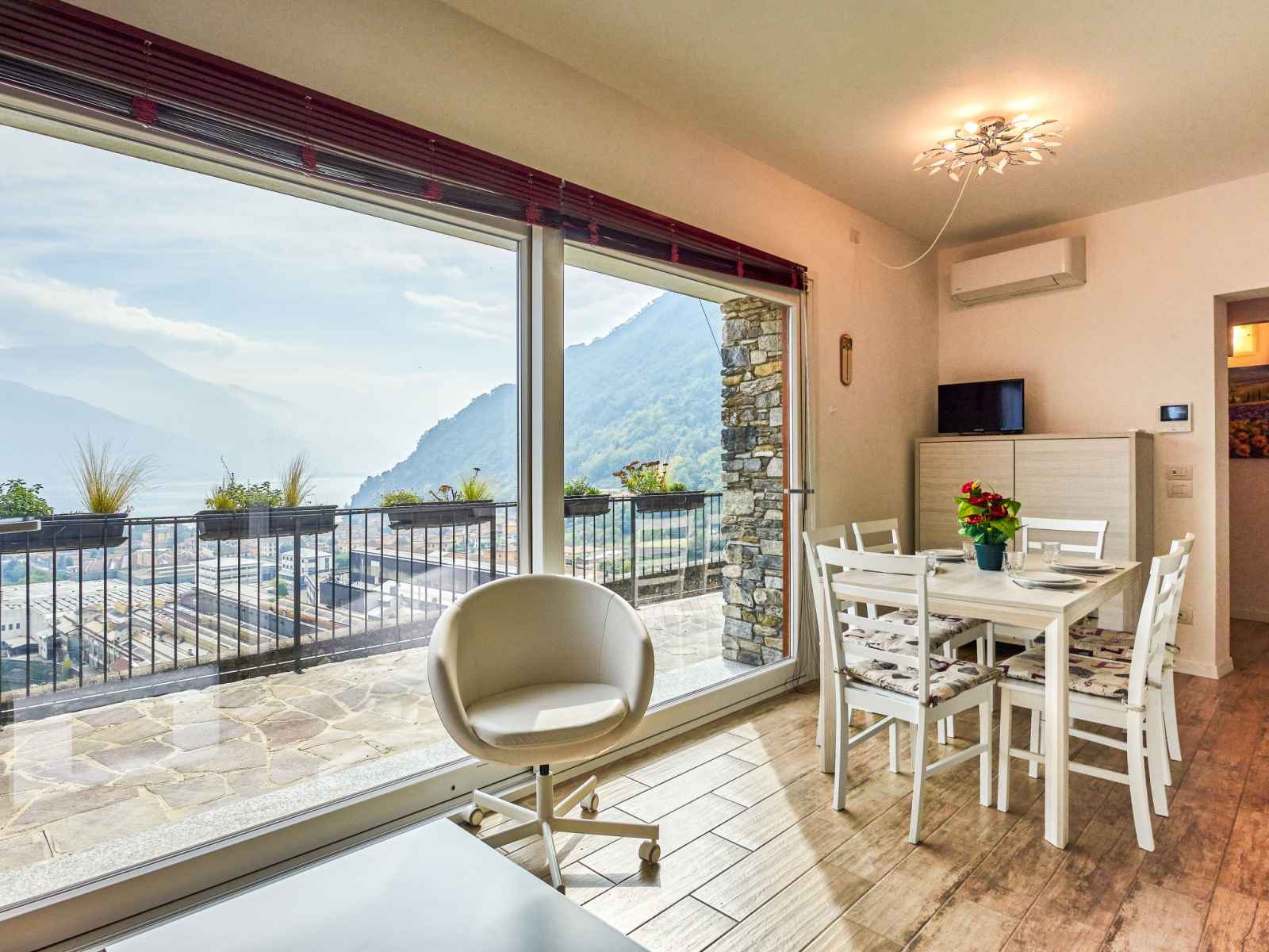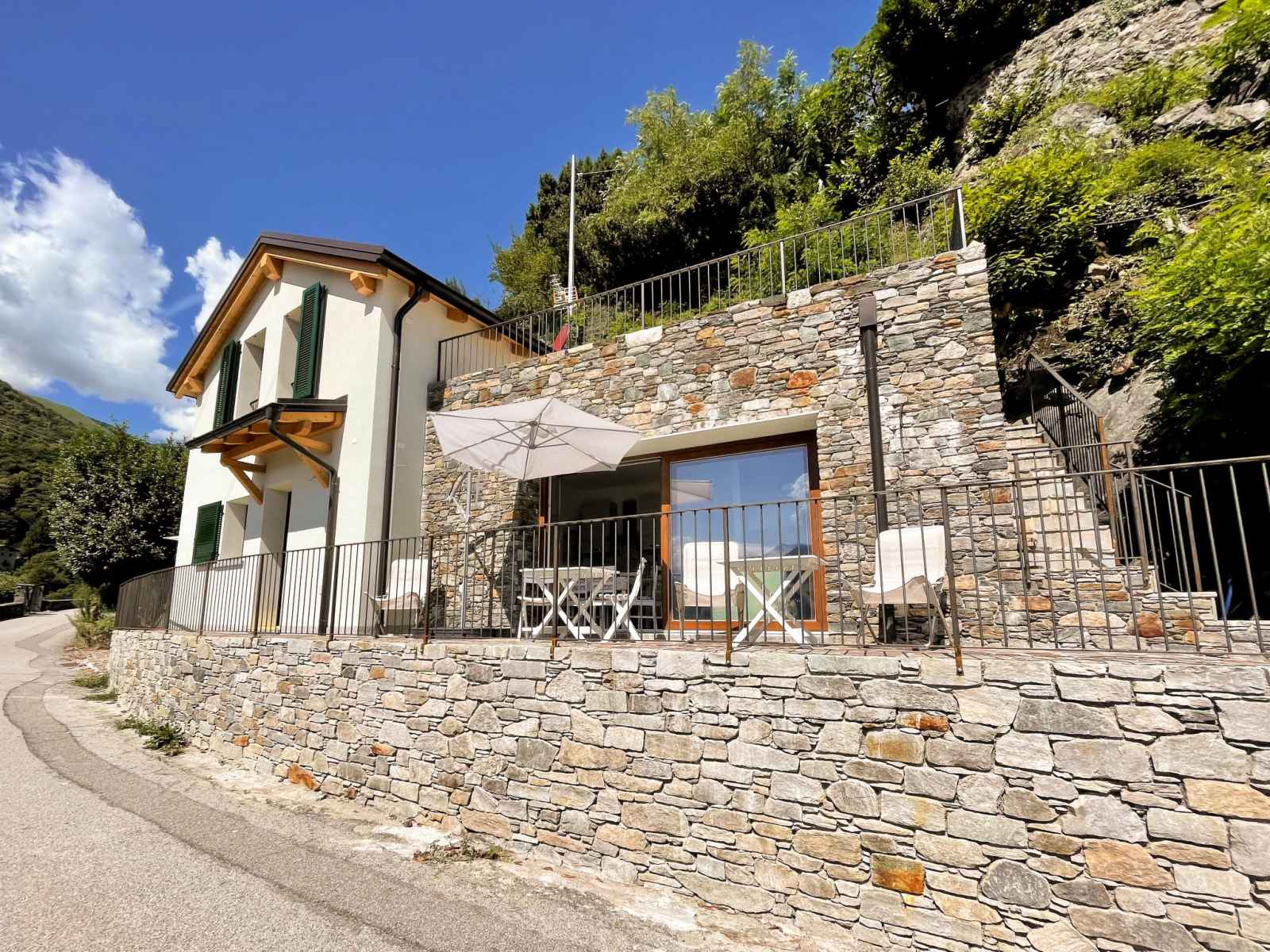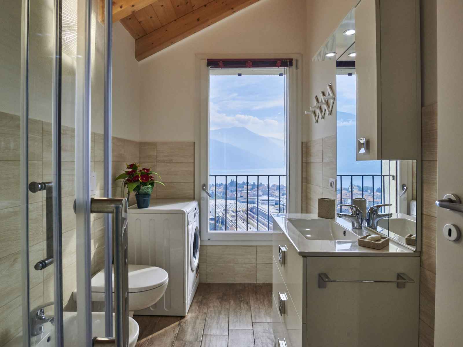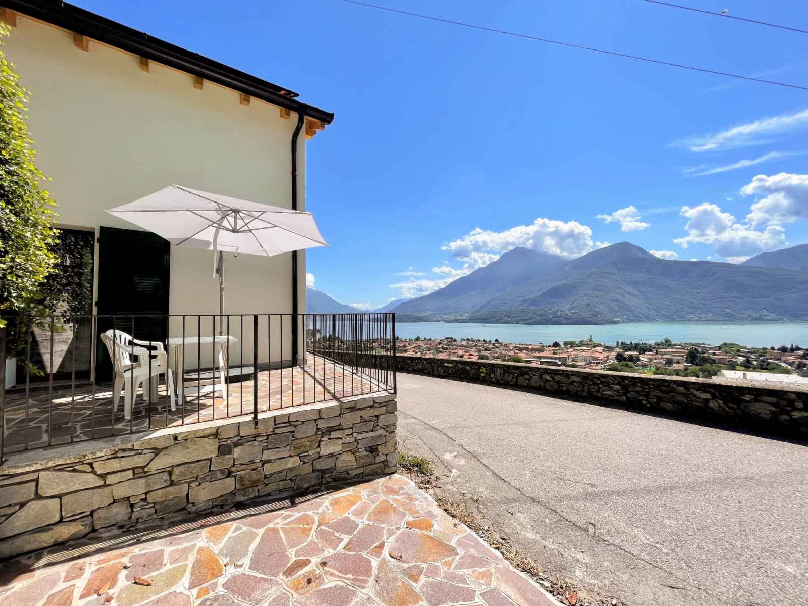 plaques à induction, micro-ondes, congélateur, cafetière électrique). Sortie sur la terrasse. Douche/bidet/WC. À l'étage supérieur: 1 chambre avec 2 lits et TV (satellite). Douche/bidet/WC. Air-conditionné, chauffage à air chaud (en sus). Sol en pierres naturelles. 2 grandes terrasses 25 m2, petite terrasse. Meubles de terrasse, barbecue électrique (portable), chaises longues (4). Superbe vue panoramique sur le lac, les montagnes et la localité. A disposition: lave-linge, sèche-cheveux. Internet (Connexion WIFI, gratuit). Place de parking (cloturée). Veuillez noter: maison non-fumeur, parking pour 1 petite voiture. IT013090C25ZQDADGN