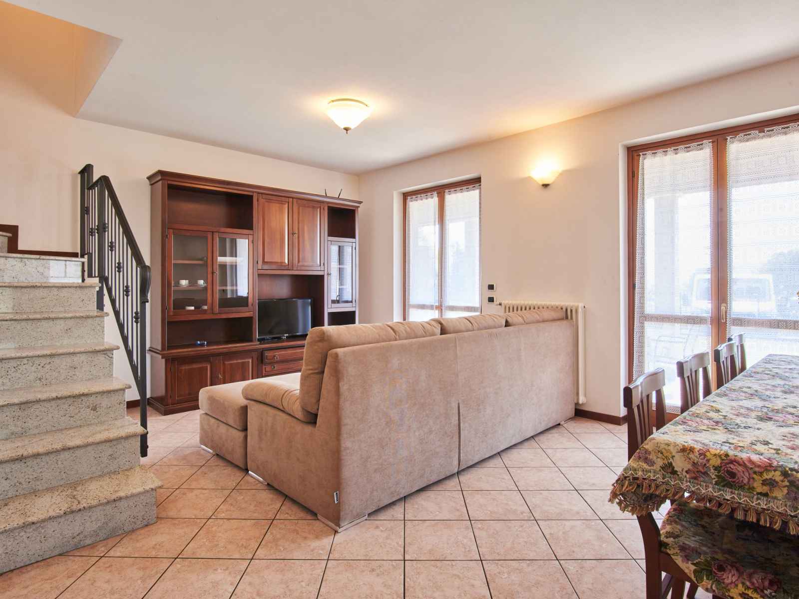 Grande maison jumelée "le villette", de 2 étages. dans le quartier de pomano, à 700 m du centre de dongo, à 48 km du centre de como, à 40 km du centre de lugano, dans un quartier résidentiel, à 450 m du lac, dans une impasse. en commun: terrain (clôturé) avec pelouse. possibilité de chauffage uniquement du 15.oct. - 15.avr.. accès en