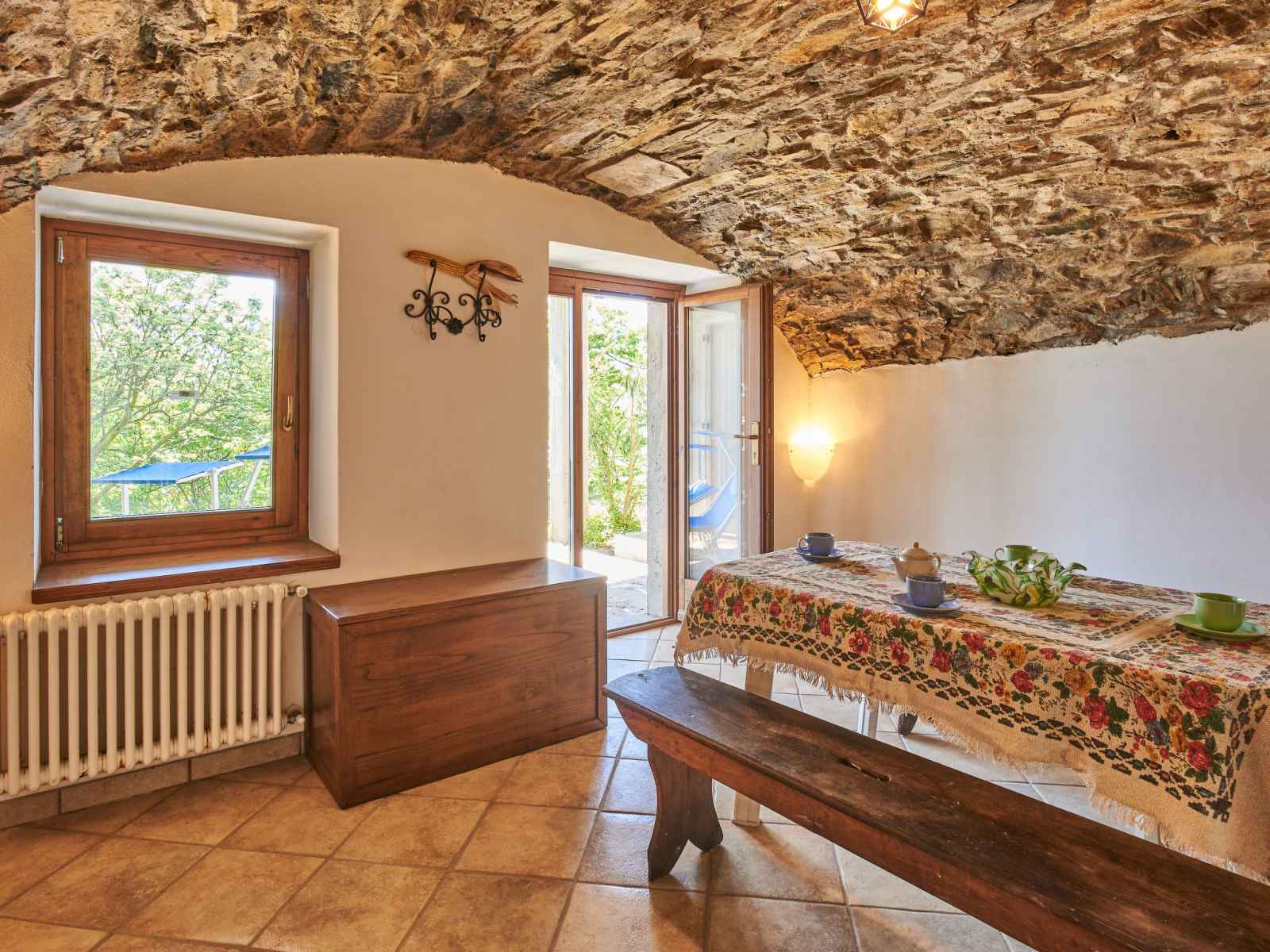 repas. Sortie sur le jardin. À l'étage supérieur: (escalier en colimaçon) 1 chambre double. Sortie sur le balcon. 1 chambre avec 1 lit et 1 lit gigogne. Sortie sur le balcon. Douche/bidet/WC. Chauffage au gaz. Sol en pierres naturelles. 2 petits balcons, terrasse 20 m2. Meubles de terrasse, chaises longues (4). Belle vue panoramique sur le lac et les montagnes. A disposition: lave-linge, chaise haute pour enfant, lit bébé jusqu'à 2 ans, sèche-cheveux. Internet (Connexion WIFI, gratuit). Veuillez noter: maison non-fumeur. Maximum 2 animaux/ chiens autorisés. IT013090C2ZT9EC7SU