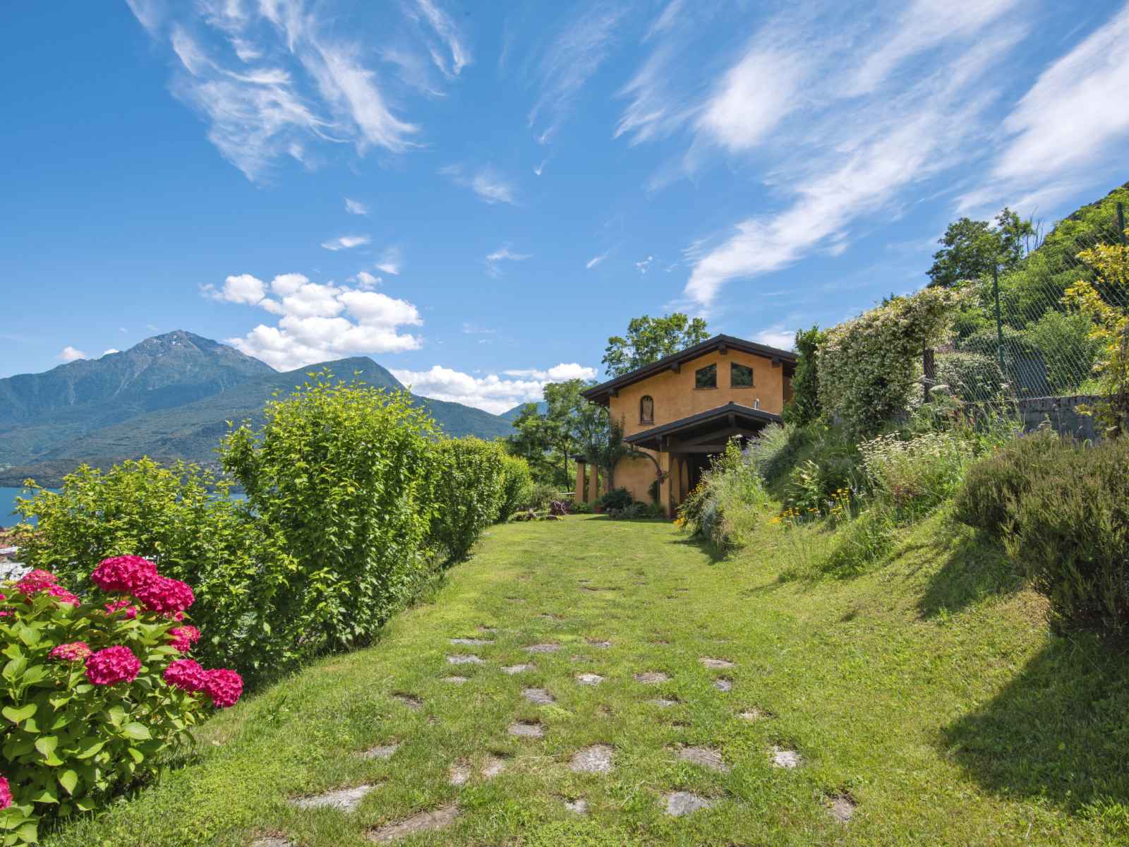 Belle maison individuelle accueillante "villa madda". À 1.6 km du centre de dongo, à 14 km du centre de menaggio, situation tranquille sur un versant, à 1.6 km du lac. a usage privé: terrain 1'500 m2 (clôturé), jardin sur plusieurs niveaux entretenu avec pelouse et arbres, piscine couverte (9 x 5 m, profondeur 120 - 160 cm). douche/wc dans