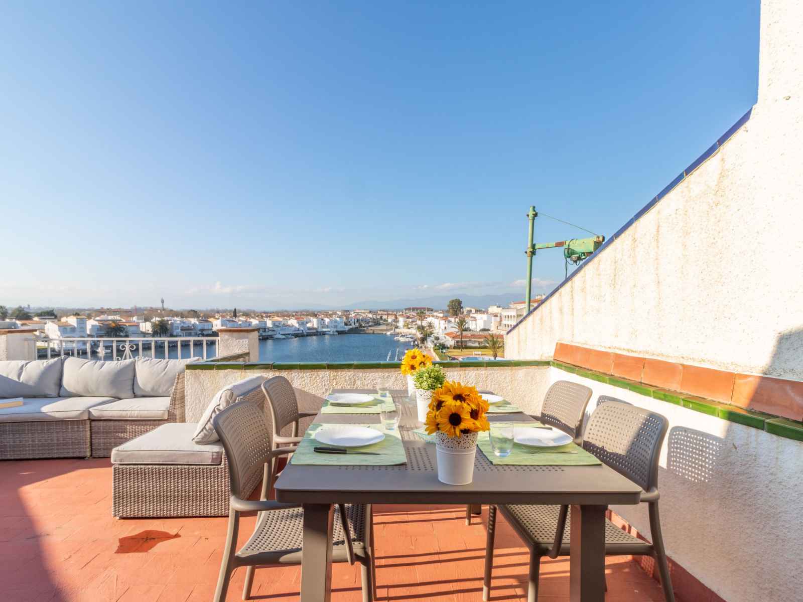 Maison accueillante, confortable "montgri". dans le quartier de montgri, à 800 m du centre d'empuriabrava, situation tranquille, ensoleillée quartier résidentiel, zone avec peu de trafic, à 1 km de la mer, à 1 km de la plage, à 220 m de la rivière, dans une impasse. a usage privé: terrain (clôturé), beau jardin entretenu avec pelouse et