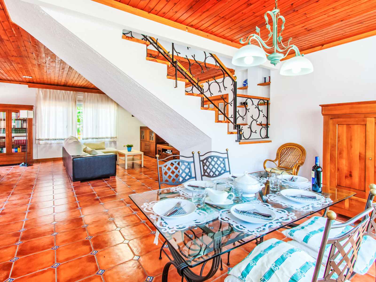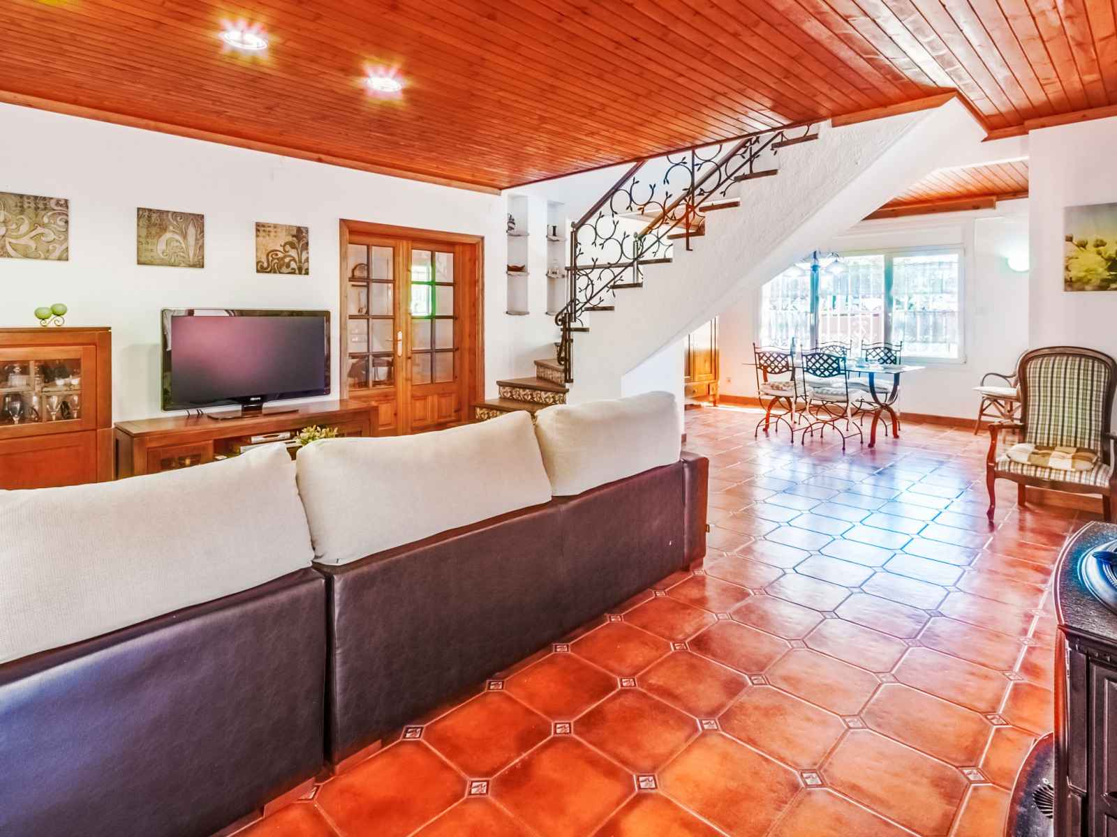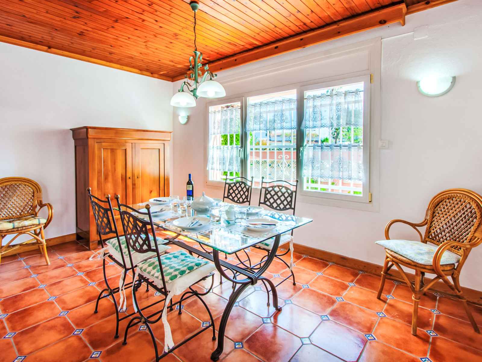 cuisson, four, lave-vaisselle, micro-ondes, congélateur, cafetière électrique). Douche/WC. À l'étage supérieur: 1 chambre avec 2 lits. 1 chambre avec 2 lits, douche/WC, air-conditionné et chauffage à air chaud. Sortie sur la terrasse. 1 chambre avec 1 lit. Séjour/chambre à coucher avec 1 divan-lit double, air-conditionné et chauffage à air chaud. Sortie sur la terrasse. Jardinet. Meubles de terrasse, barbecue, chaises longues. A disposition: lave-linge. Internet (Connexion WIFI, gratuit). Place de parking près de la maison. Veuillez noter: maximum 1 animal/ chien autorisé. TV seulement DE. HUTG032692 // Reg. Nr.: ESFCTU000017020000079868000000000000000000HUTG0326922