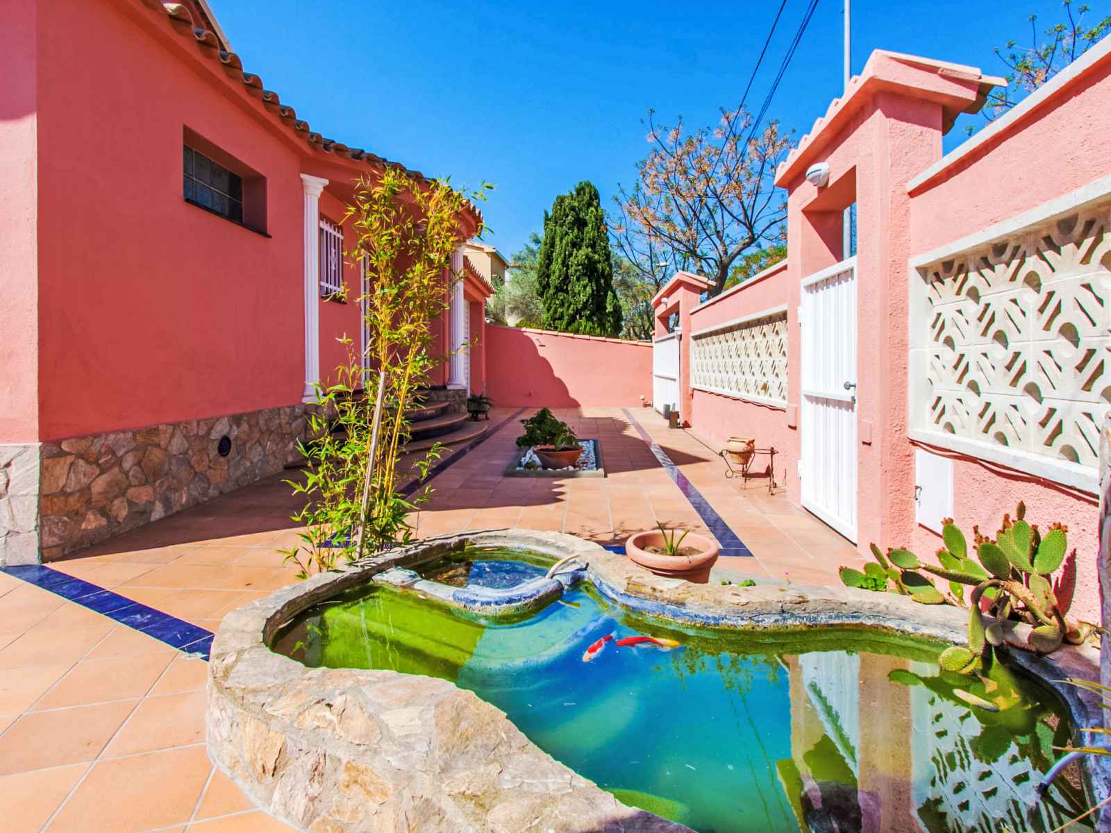 Requesens: maison individuelle confortable "requesens", de 2 étages. au centre d'empuriabrava, situation centrale, ensoleillée quartier résidentiel, excellente situation: centrale mais tranquille, à 400 m de la mer, à, du canal, à 300 m de la rivière, orientée sud. a usage privé: terrain (clôturé), verger (clôturé), étang, piscine (7