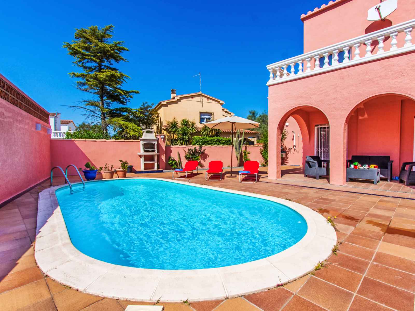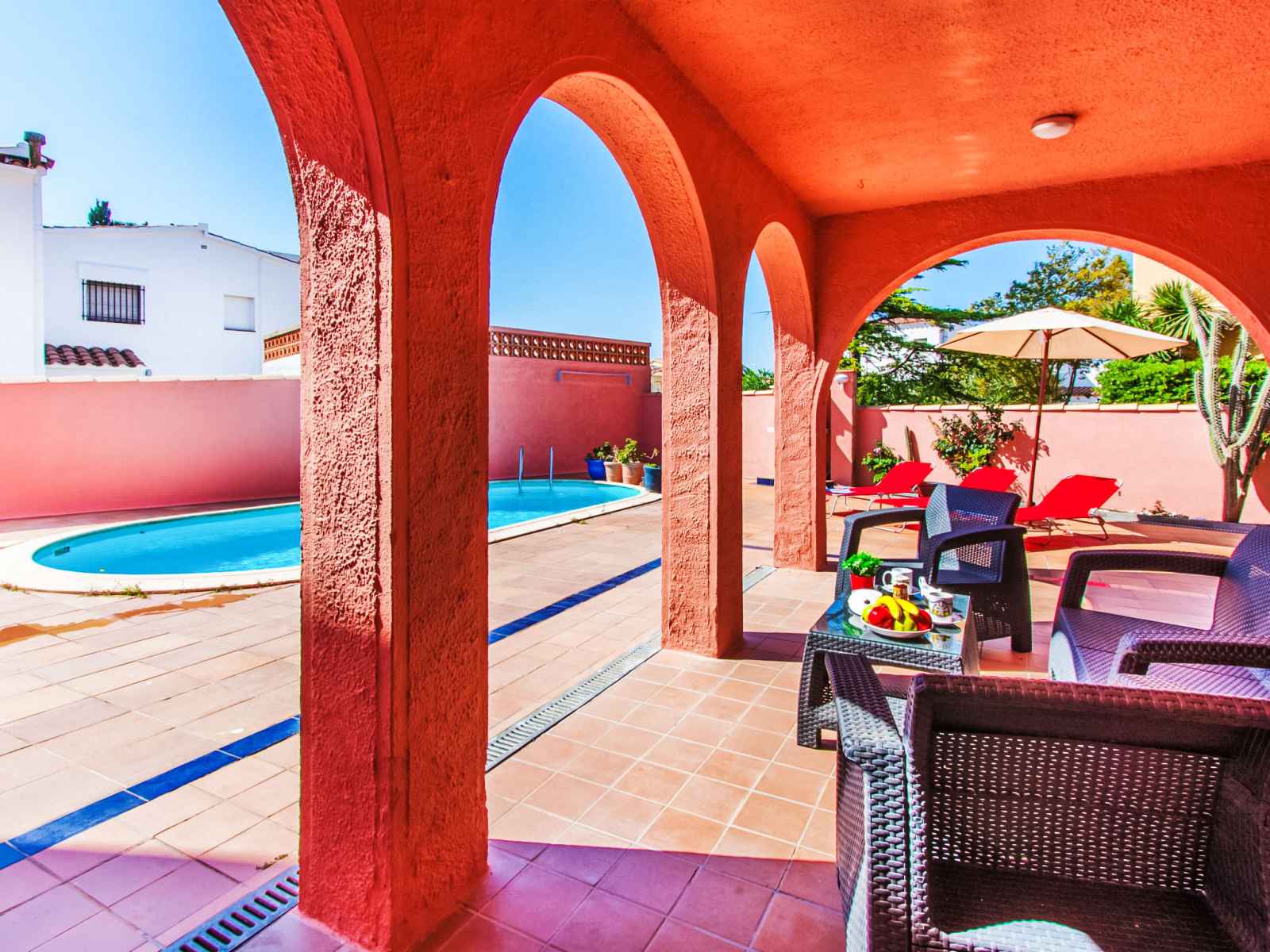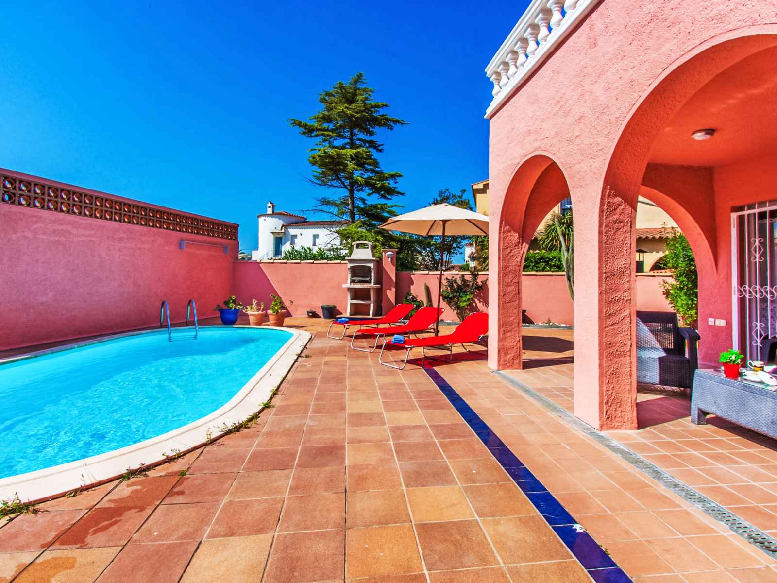 x 4 m, disponibilité saisonnière: 01.jan. - 31.dec.). douche extérieure, terrasse (400 m2), meubles de jardin, barbecue. infrastructures de la maison: lave-linge. place de parking près de la maison sur le terrain. magasins, magasin d'alimentation 100 m, supermarché 300 m, centre commercial 100 m, restaurant, bar 50 m, café 100 m, zone piétonne 50 m, arrêt de bus 200 m, plage de sable "empuriabrava" 300 m. port plaisance 1 km, terrain de golf (18 trous) 12 km, tennis 3 km, golf miniature 600 m, centre équestre 4 km, centre sportif 1 km, chemins de randonnées pédestres depuis la maison, piste cyclable 200 m. attractions à proximité: centro paracaidismo y túnel del viento 3 km, parque acuático roses 6 km, casino y festival de peralada 14 km, museo dalí a figueres 15 km, ruïnes de sant martí d'empuries 21 km, monasterio de sant pere de rodes 23 km. la remise des clés a lieu à l’agence interhome d'empuriabrava.