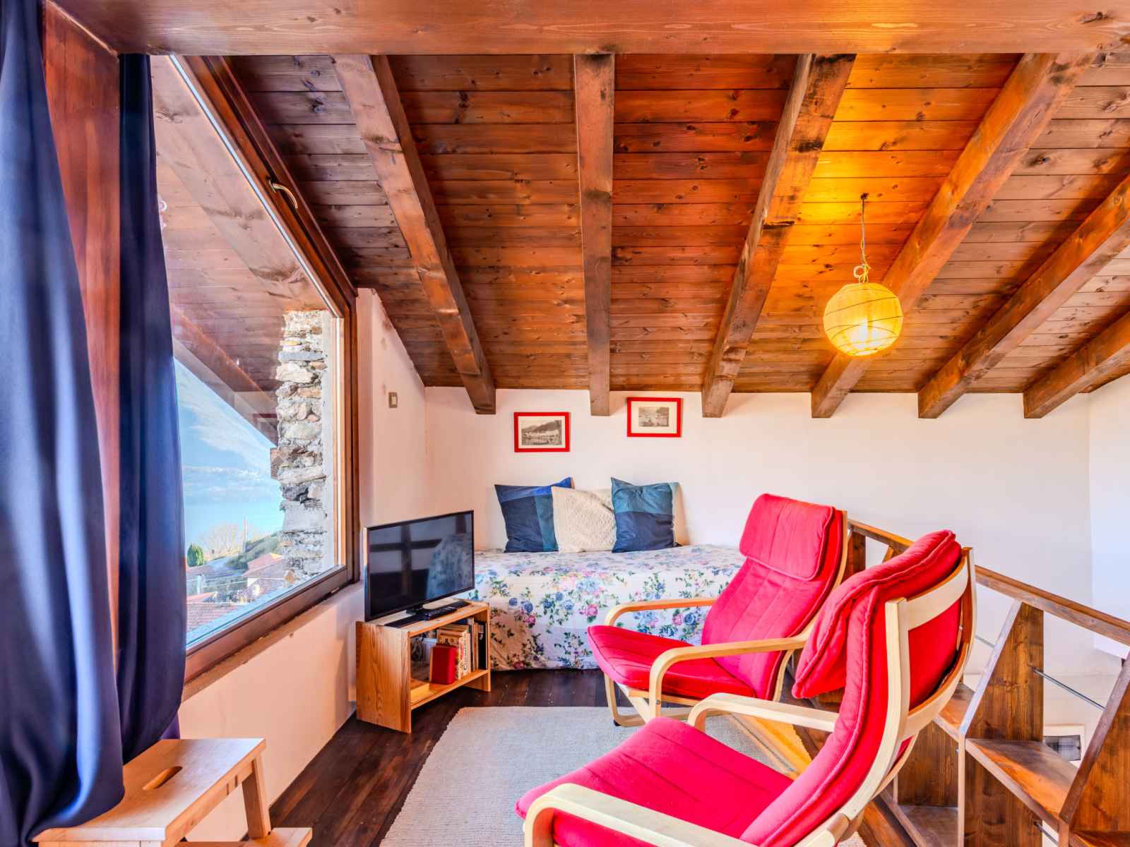 grille-pain, bouilloire électrique, micro-ondes, congélateur). À l'étage inférieur: 1 chambre avec 1 x 2 lits superposés, 1 lit double. Sortie sur le jardin. Douche/bidet/WC. Chauffage au gaz. Possibilité de chauffage uniquement du 15.10. au 30.04. Sol en pierres naturelles. Petit balcon, grande terrasse, jardin. Meubles de terrasse, chaises longues (2). Superbe vue panoramique sur le lac, les montagnes et la localité. A disposition: lave-linge, chaise haute pour enfant, sèche-cheveux. Internet (Connexion WIFI, gratuit). Veuillez noter: maison non-fumeur, pas de parking. Maximum 1 animal/ chien autorisé. Détecteur de fumée, extincteur. IT013249C2G3DY7FHC