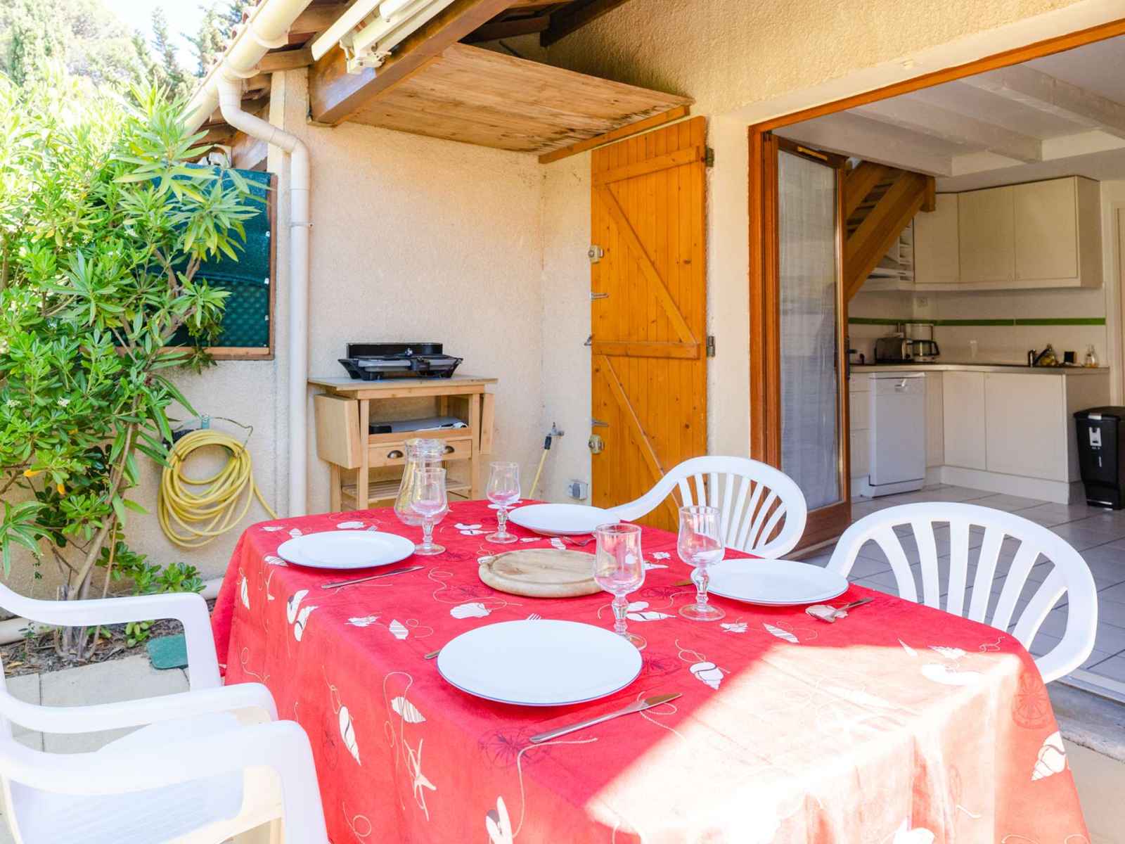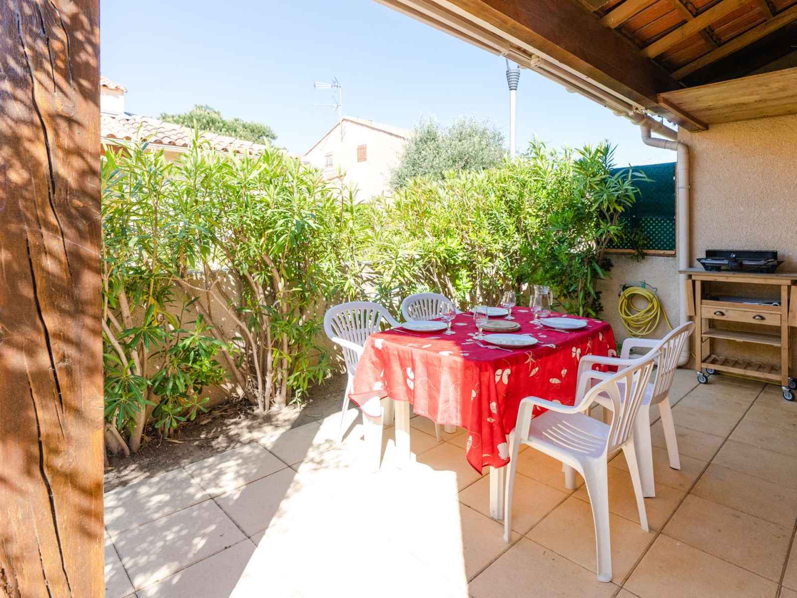cet agréable pavillon dispose d'une terrasse avec store-banne, tuyau d'arrosage (pratique au retour de la plage!), d'un salon de jardin (table pour 5), barbecue