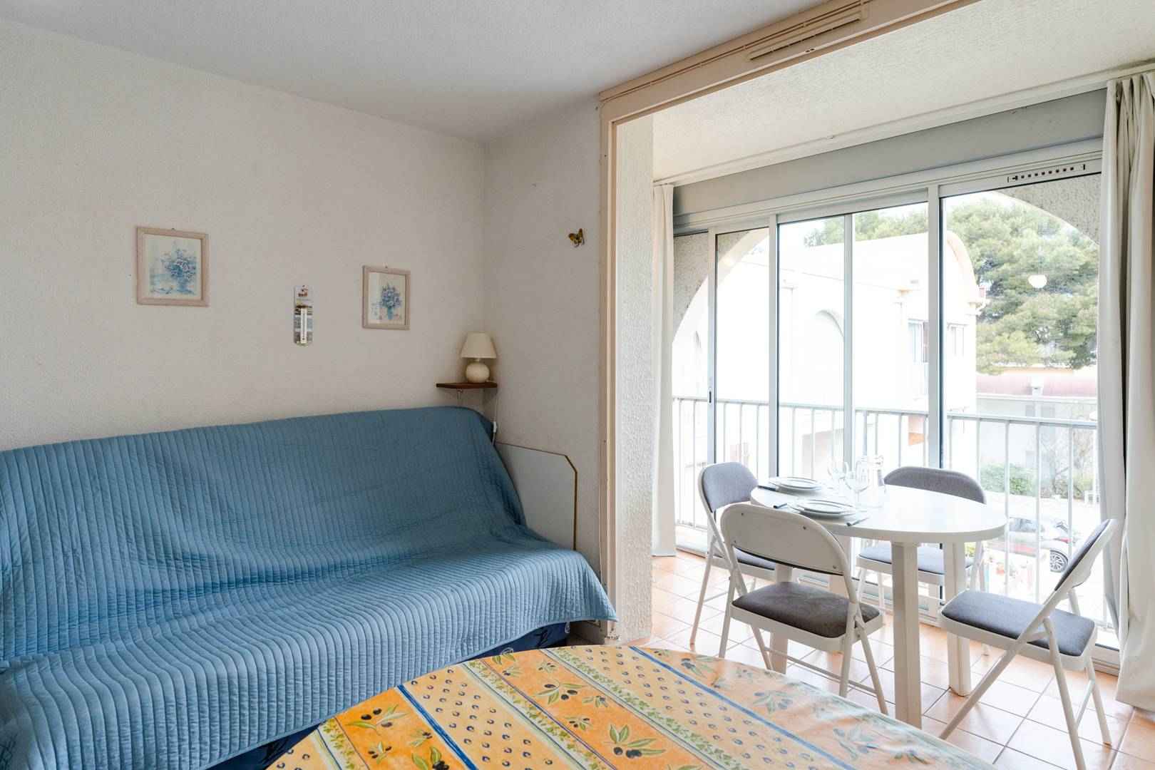Pavillon 5 couchages dans résidence avec piscine, proche de la plage des ayguades, place de parking privative. pas de chauffage.