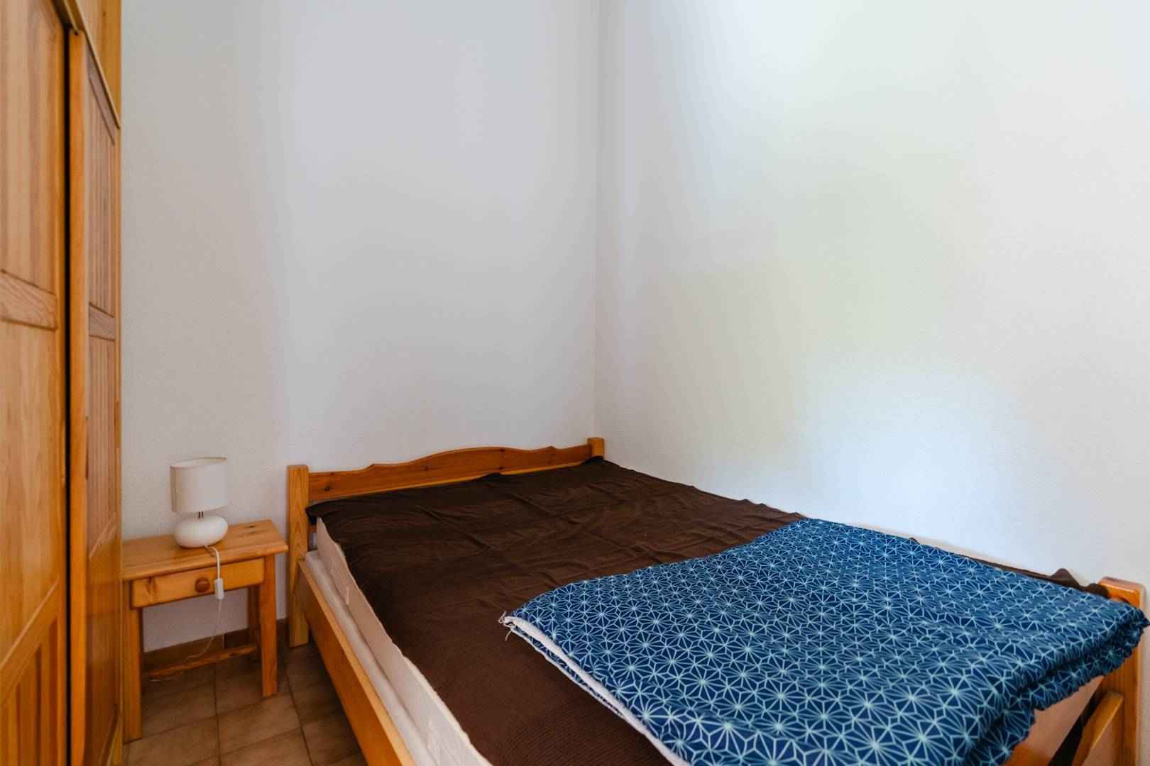 Une chambre se situe au rez-de-chaussée avec un lit pour deux personnes (140x190cm) et une armoire.