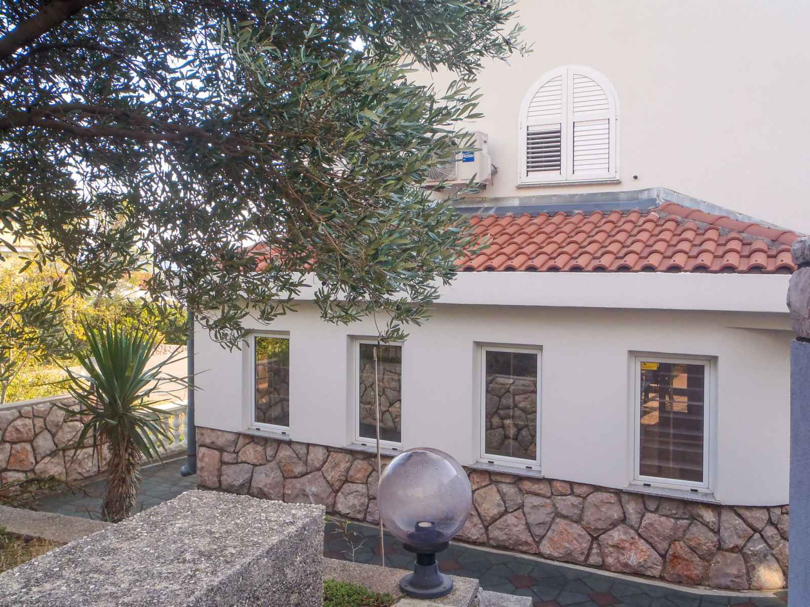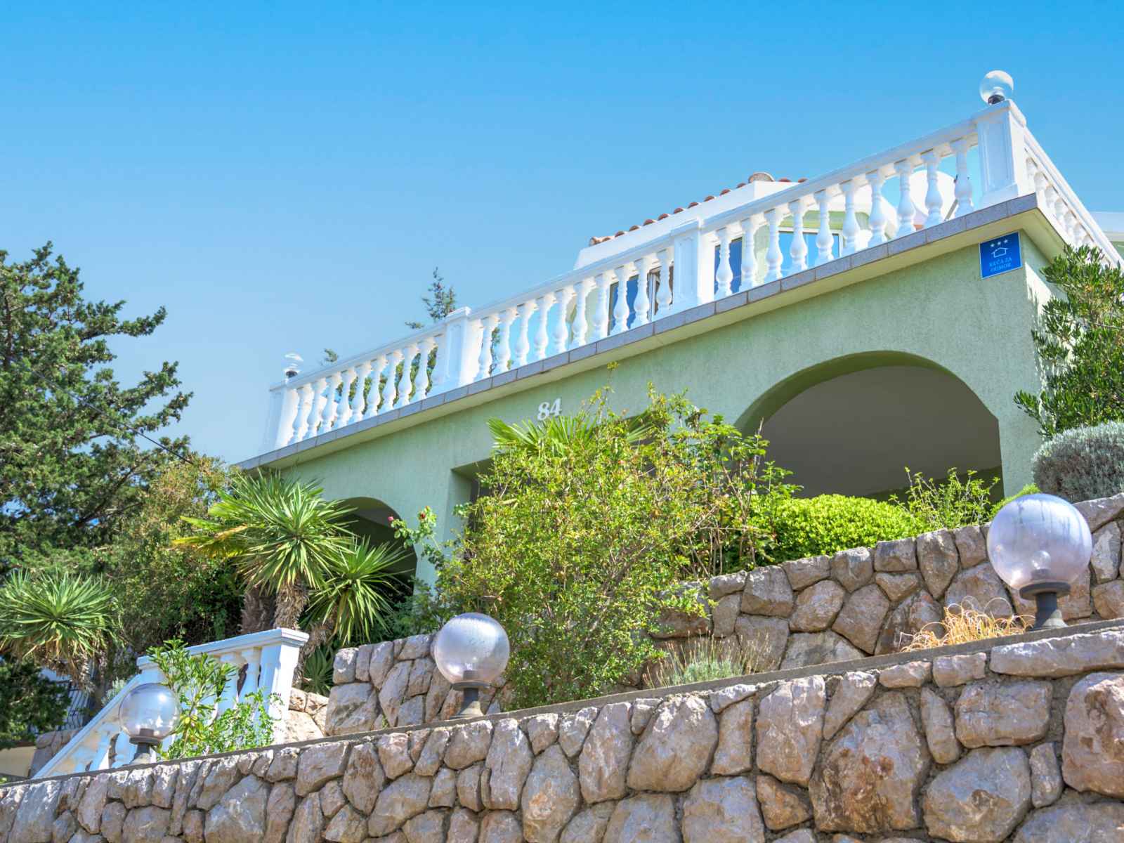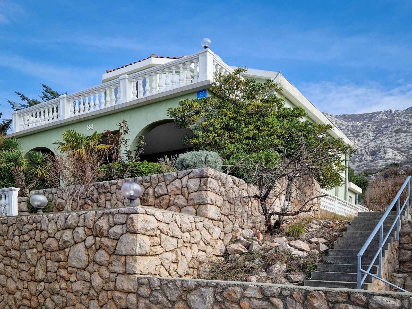 Ribarica à 5 km de karlobag: maison individuelle "alma", de 2 étages. À 80 m de la mer, à 80 m de la plage, dans une rue. a usage privé: terrain 300 m2, fleurs et arbres. barbecue. infrastructures de la maison: accès internet, lave-linge. place de parking (pour 2 voitures) près de la maison sur le terrain. magasins 400 m, restaurant 550 m,