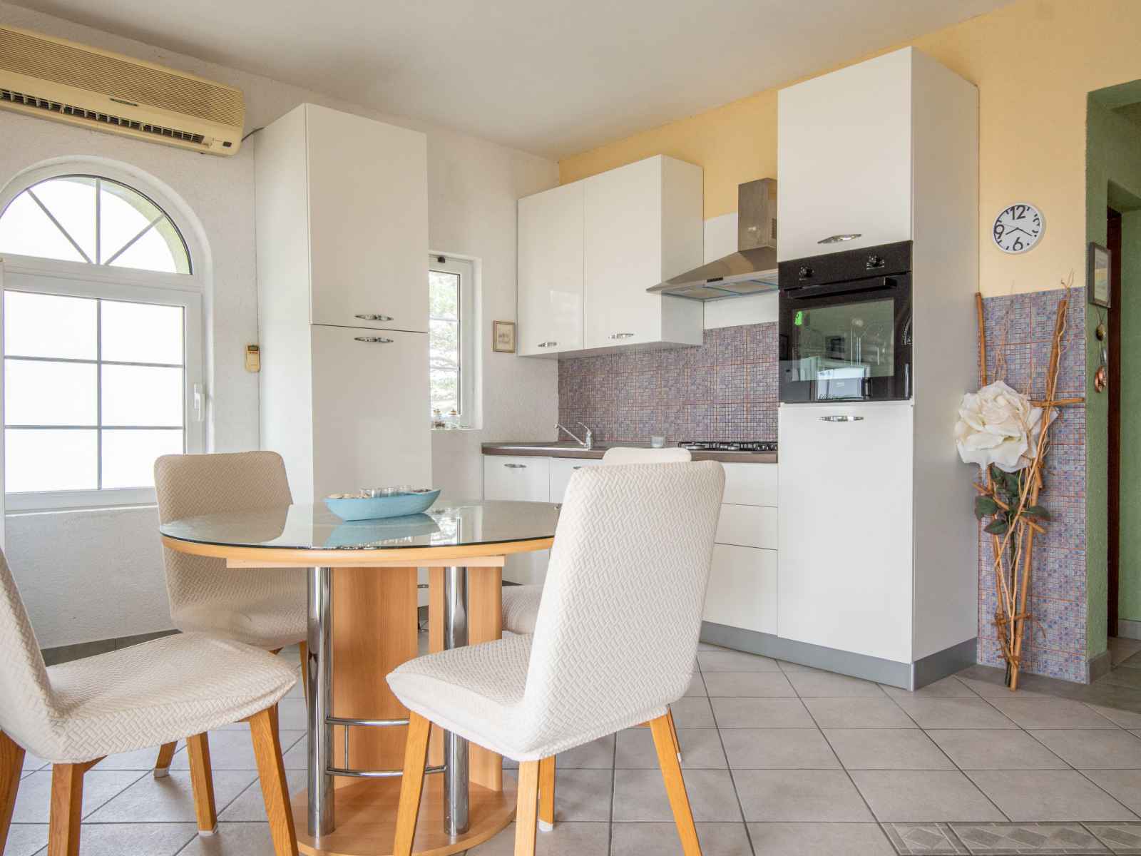 Maison 6 pièces 135 m2 sur 2 niveaux. séjour/salle à manger hauteur plafond 40 - 230 cm avec 1 divan-lit double et tv (satellite) (écran plat). 1 chambre avec 1 grand-lit (160 cm, longueur 200 cm). cuisine ouverte (four, lave-vaisselle, 4 feux, grille-pain, bouilloire électrique, congélateur, cafetière électrique) avec air-conditionné.