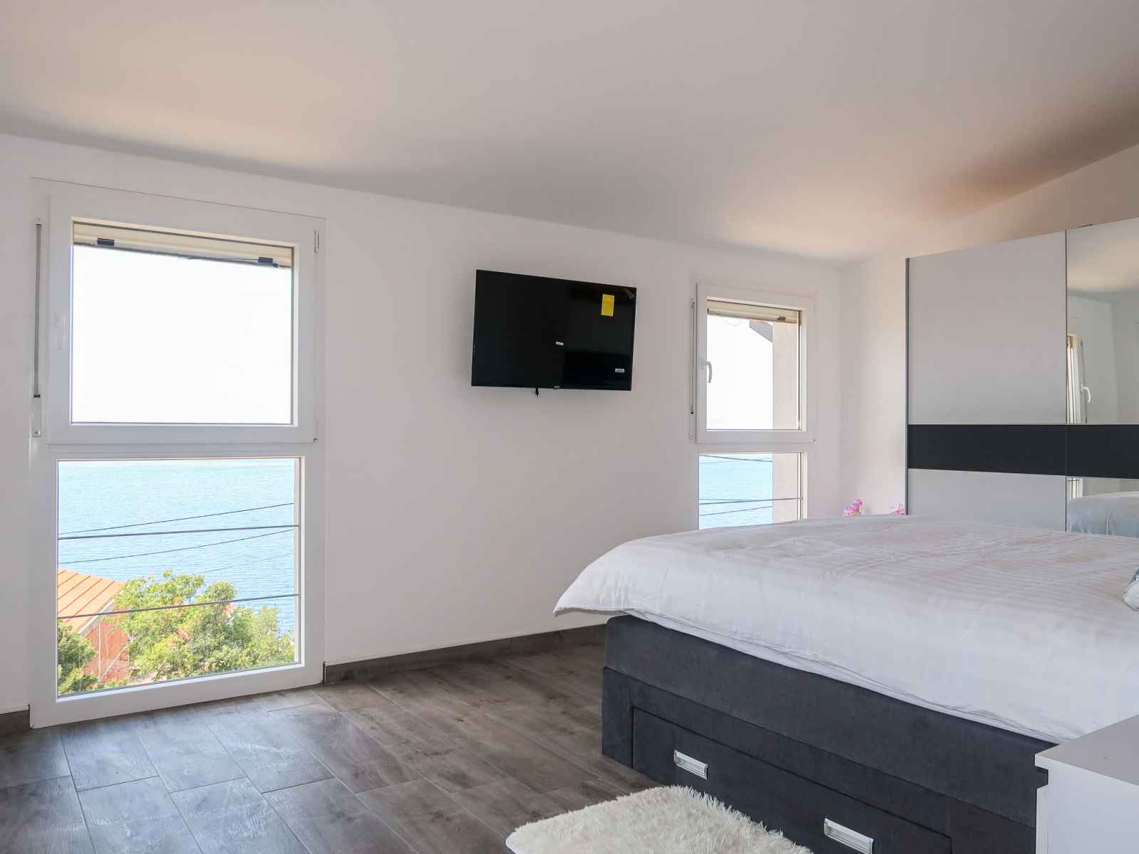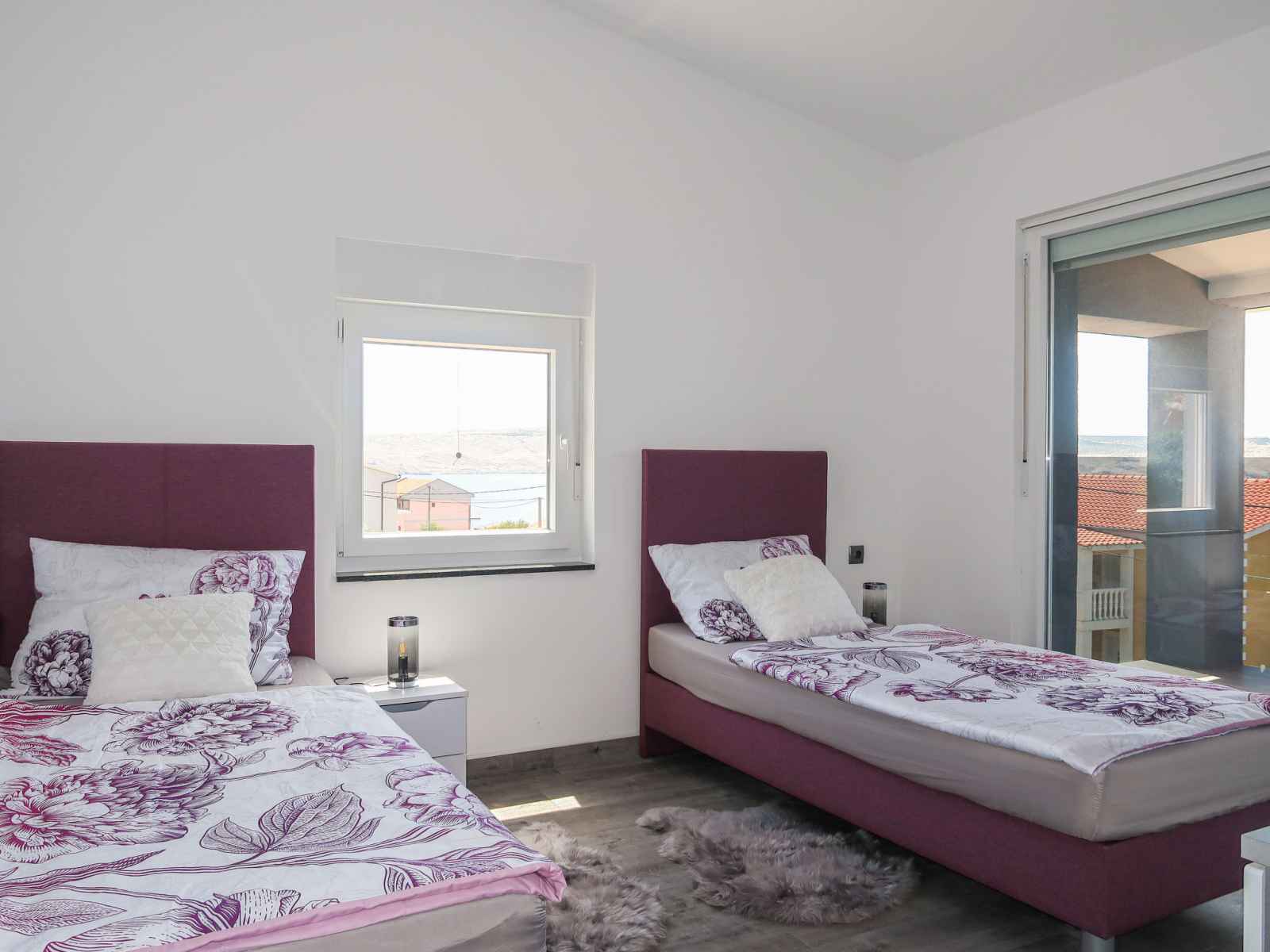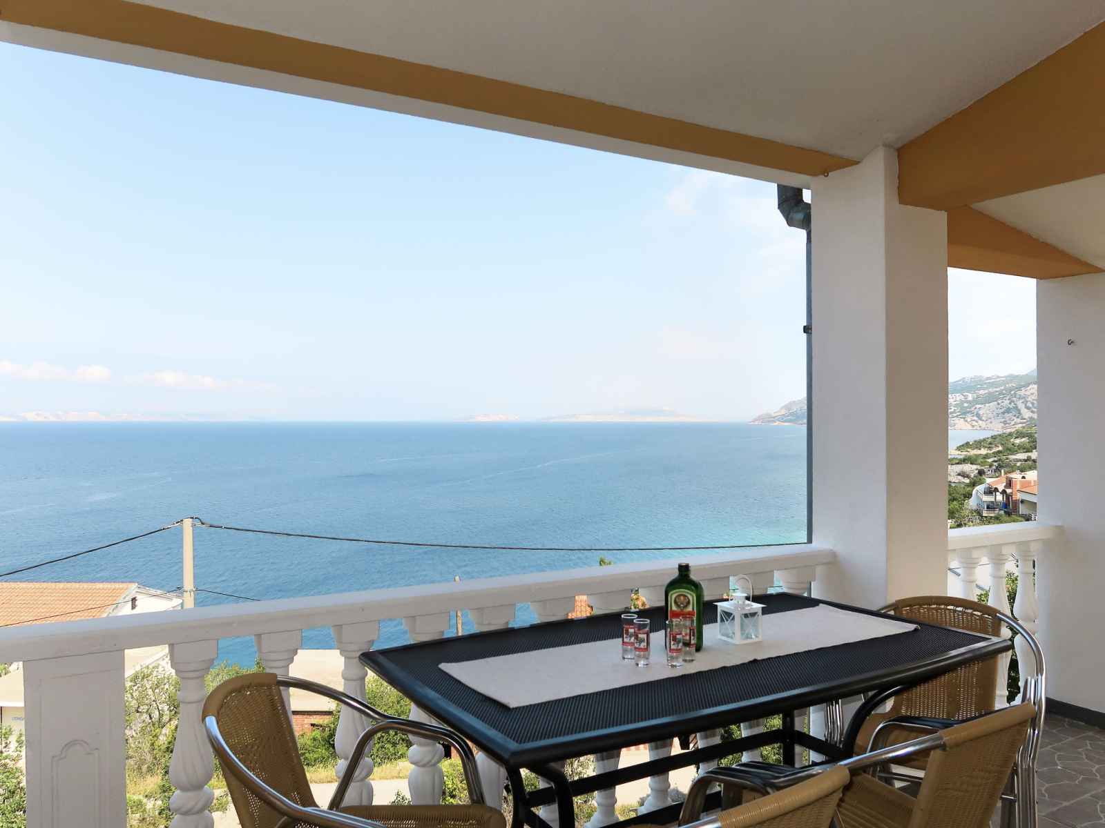 Douche/bidet/WC. À l'étage supérieur: 1 chambre avec 1 grand-lit (160 cm, longueur 200 cm), douche/WC, TV (satellite) et air-conditionné. Sortie sur le balcon. 1 chambre avec 2 lits (80 cm, longueur 200 cm), TV (satellite) et air-conditionné. Sortie sur le balcon. 1 chambre avec 1 grand-lit (160 cm, longueur 200 cm), douche/WC, TV (satellite) et air-conditionné. Douche/bidet/WC. Chauffage à air chaud. Balcon 6 m2, terrasse 16 m2. Meubles de terrasse. Belle vue sur la mer. A disposition: coffre-fort, moustiquaire. Internet (Connexion WIFI, gratuit). Veuillez noter: maison non-fumeur.