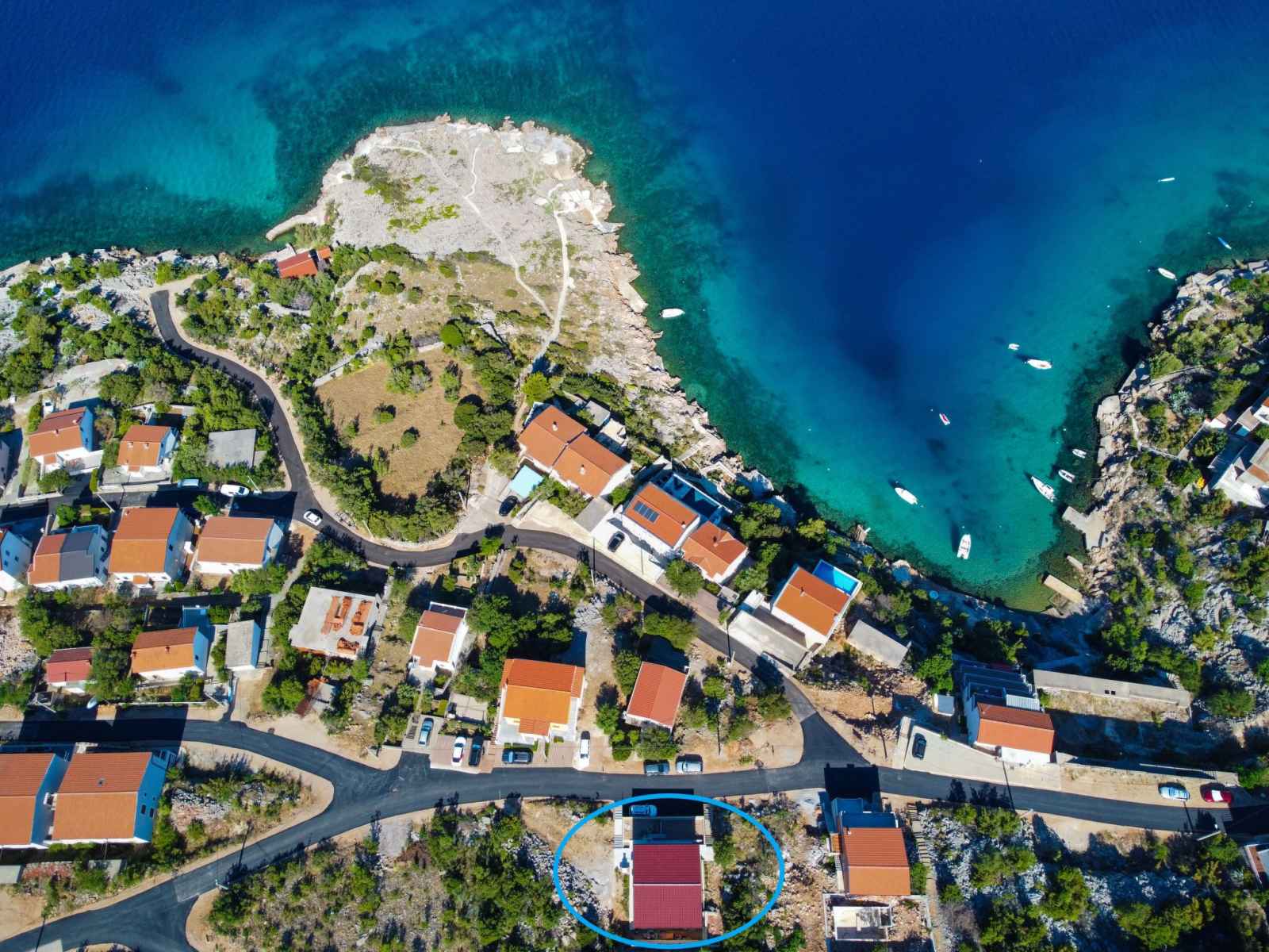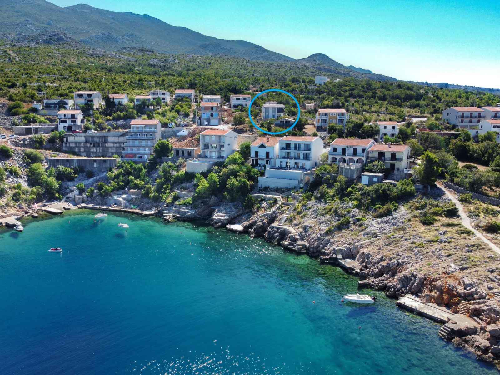 Prizna à 17 km de karlobag: maison individuelle moderne "emili & elias", de 2 étages, année de construction 2022. situation ensoleillée, surélevée, à 100 m de la mer, à 100 m de la plage. a usage privé: terrain 300 m2, piscine (3 x 7 m, disponibilité saisonnière: 15.mar. - 15.nov.). douche extérieure, barbecue. infrastructures de la