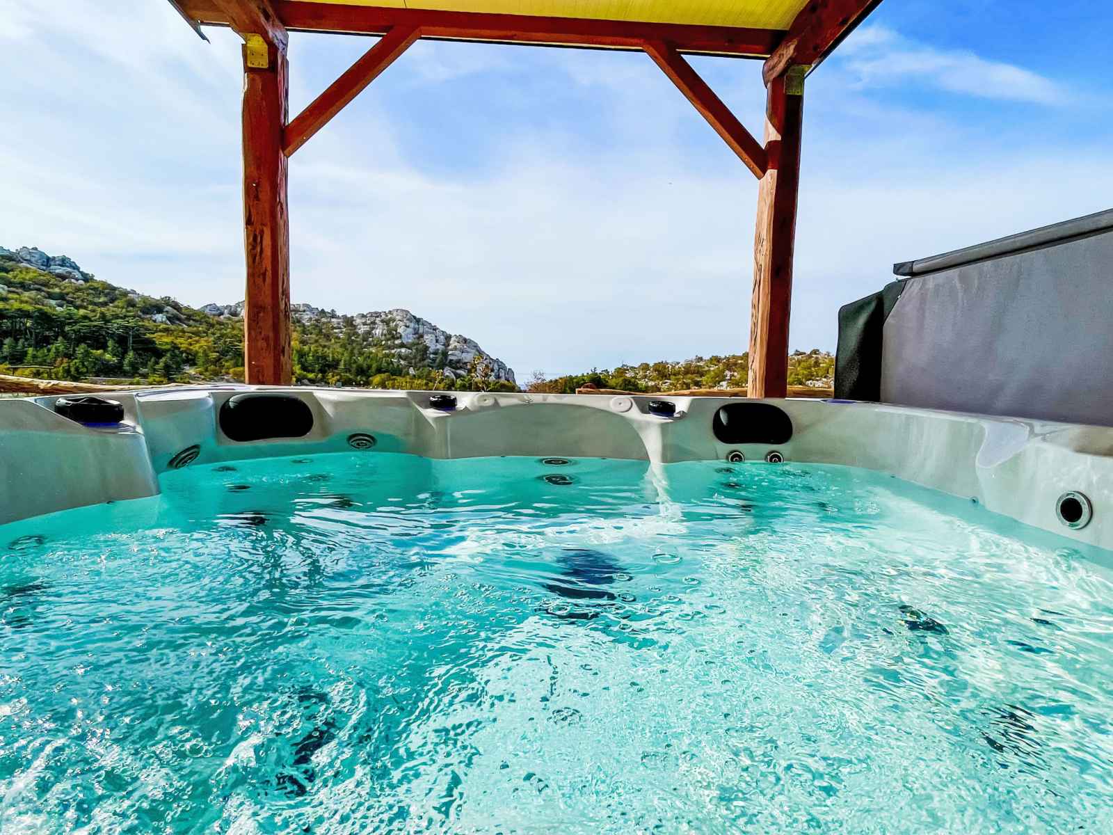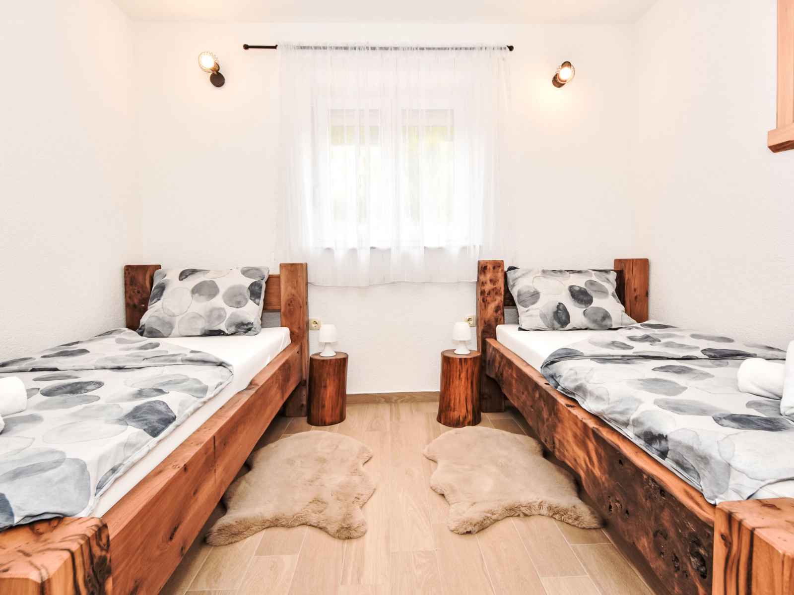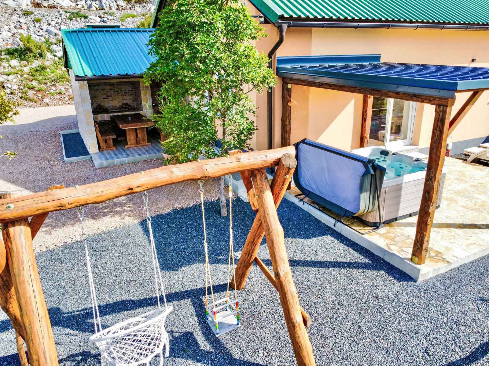 Ledenik cesarički à 10 km de karlobag: maison à 2 apts "iva", année de construction 2024. situation ensoleillée, à 11 km de la mer, à 11 km de la plage. en commun: terrain 6'000 m2. bain à remous . a usage privé: meubles de jardin, barbecue. infrastructures de la maison: accès internet, lave-linge. place de parking (pour 3 voitures)